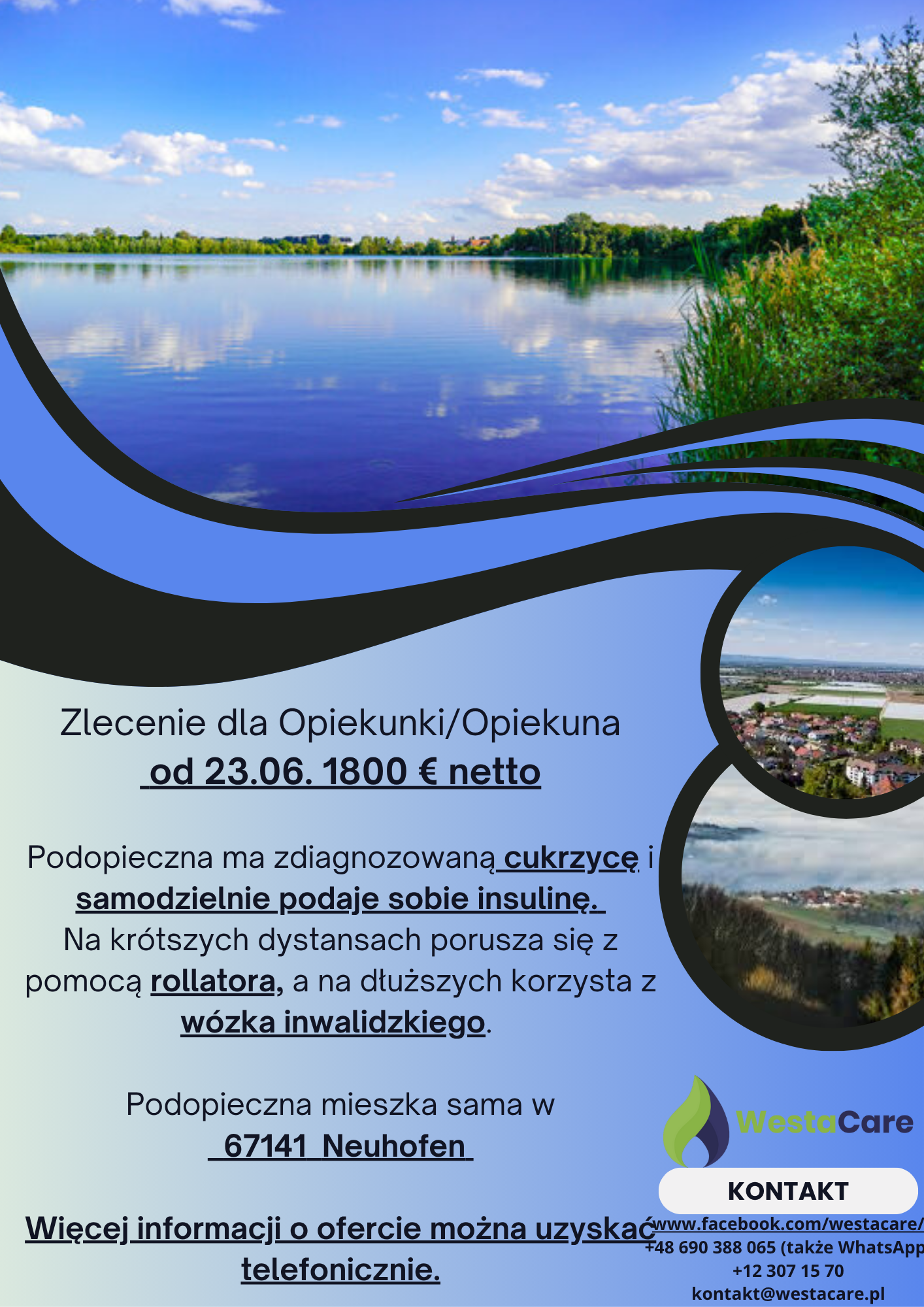 Zlecenie dla Opiekunki/Opiekuna od 23.06. 1800 € netto
