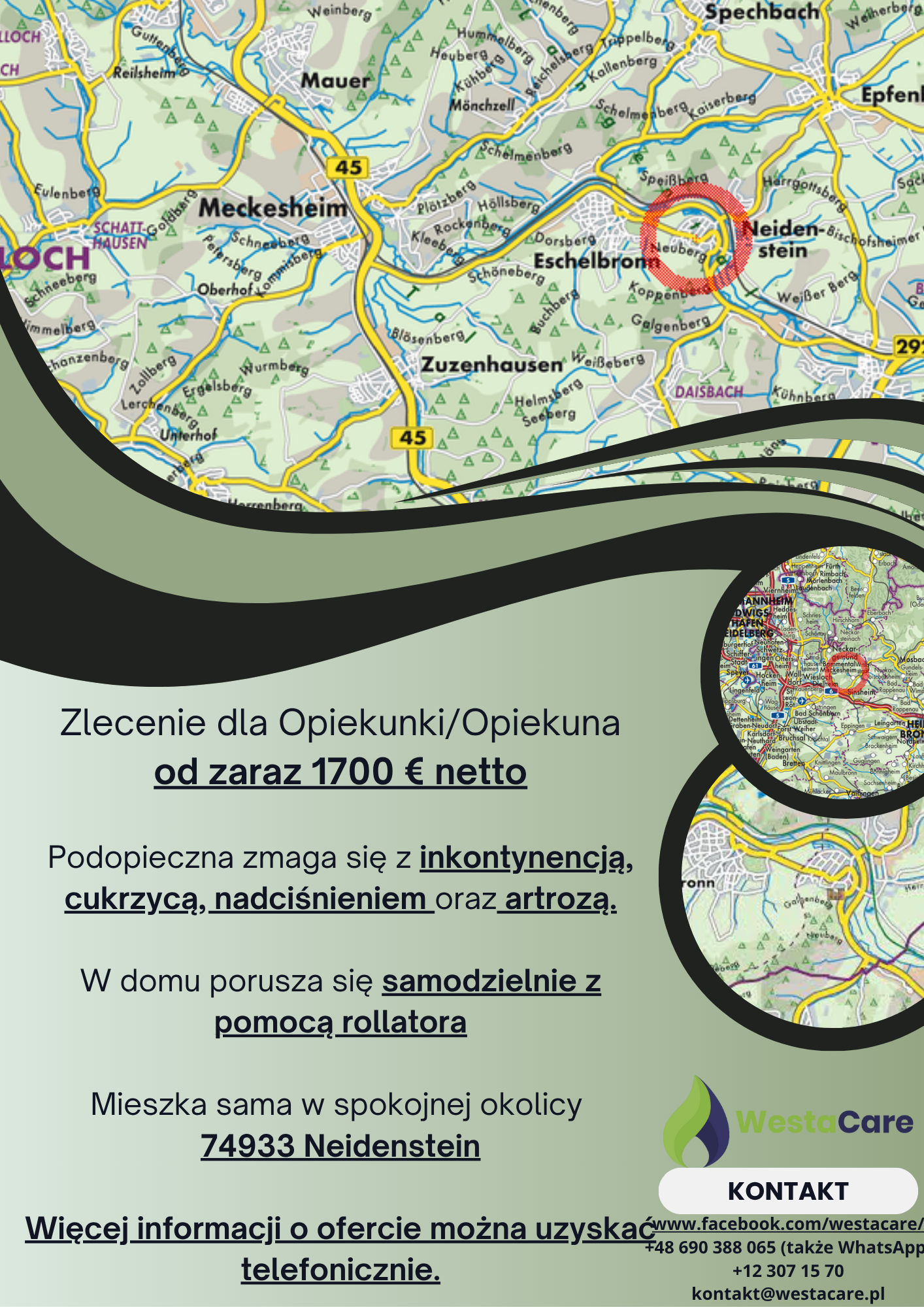 Zlecenie dla Opiekunki/Opiekuna od zaraz 1700 € netto