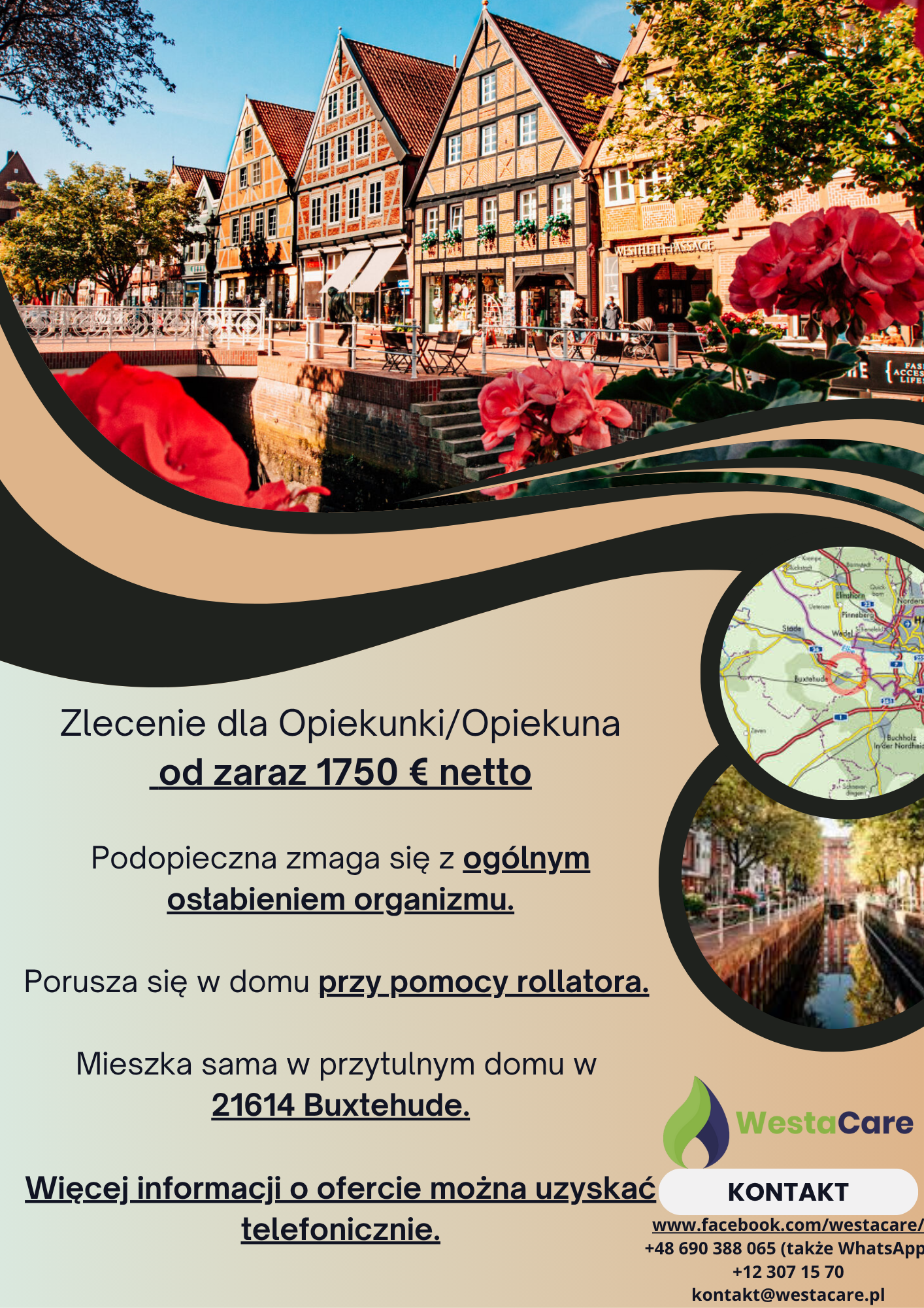 Zlecenie dla Opiekunki/Opiekuna od zaraz 1750 € netto