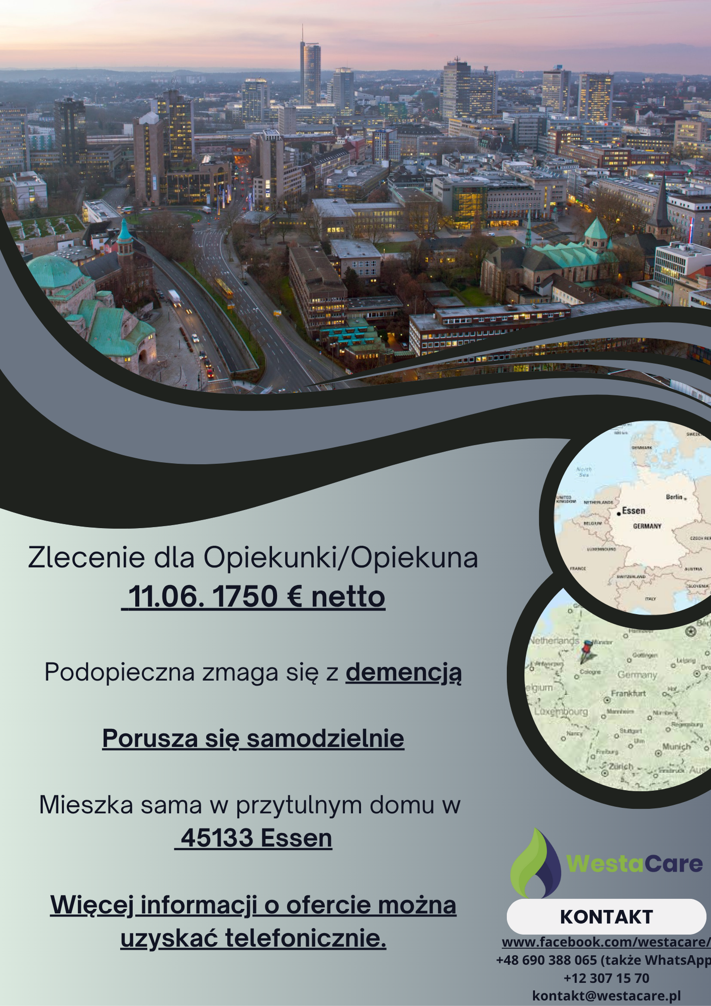 Zlecenie dla Opiekunki/Opiekuna od 11.06. 1750 € netto