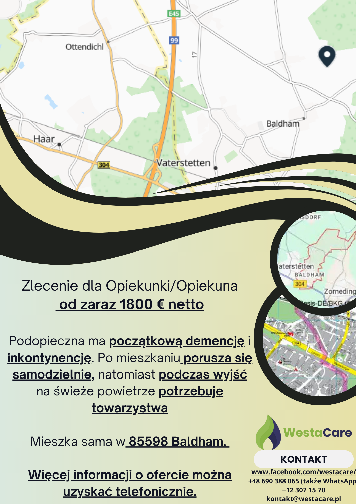 Zlecenie dla Opiekunki/Opiekuna od zaraz 1800 € netto