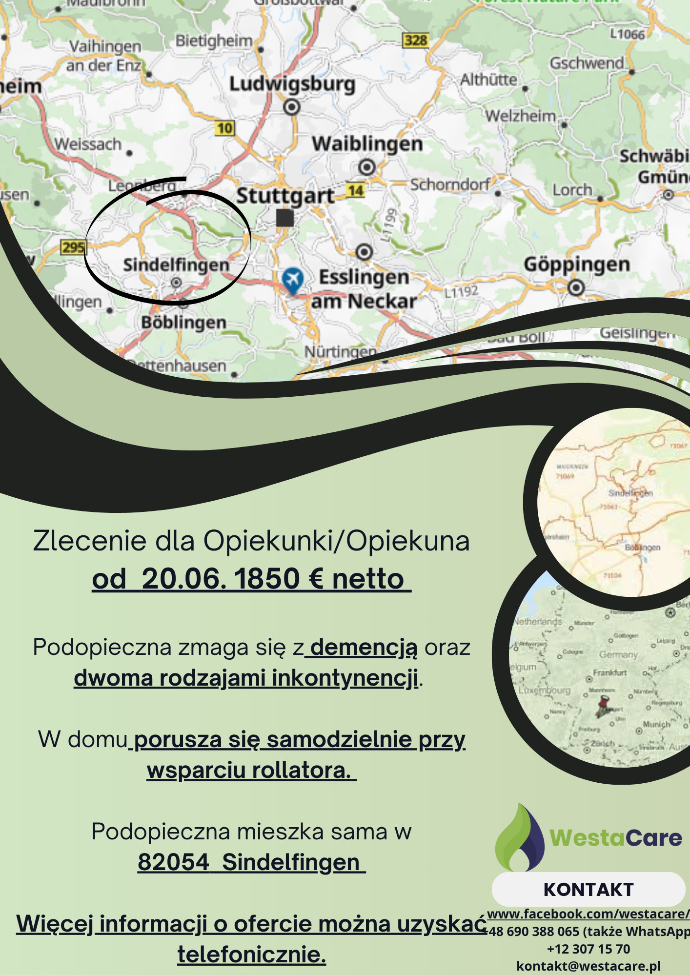Zlecenie dla Opiekunki/Opiekuna od 20.06. 1850 € netto
