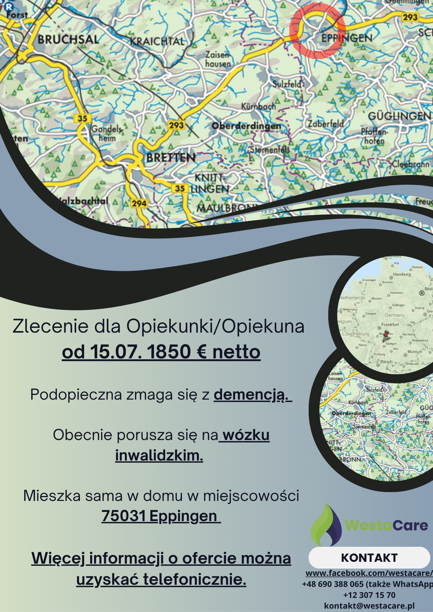 Zlecenie dla Opiekunki/Opiekuna od 15.07. 1850 € netto