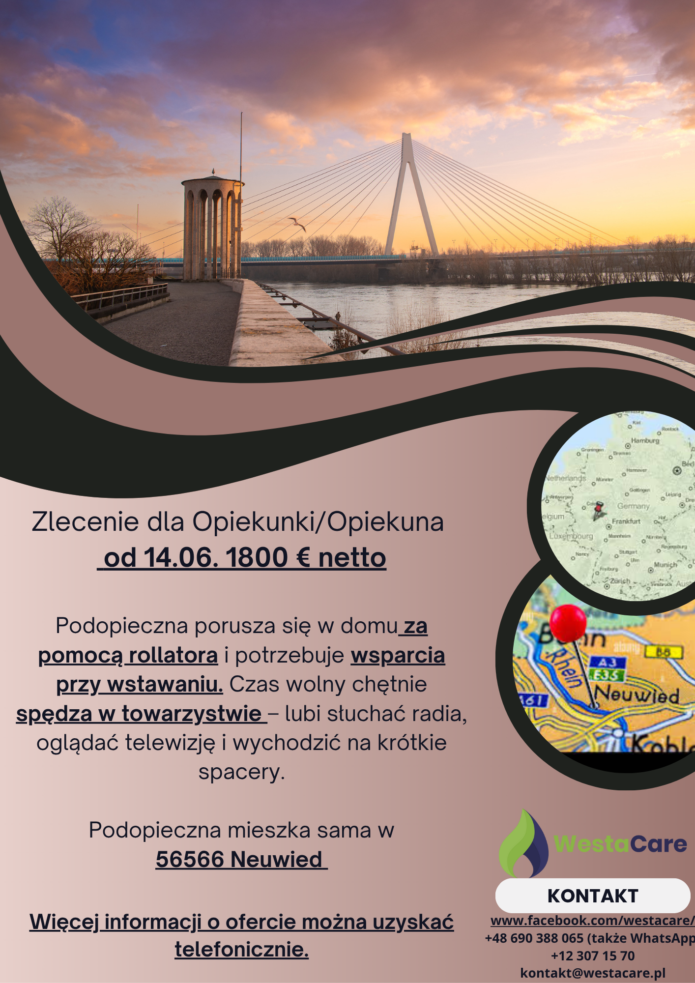 Zlecenie dla Opiekunki/Opiekuna od 14.06. 1800 € netto