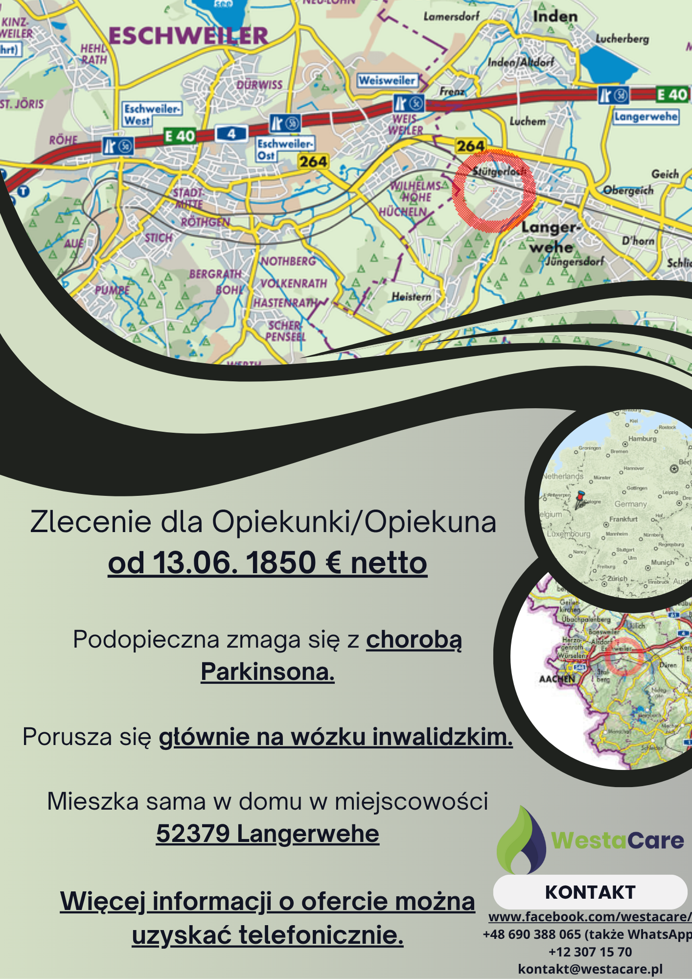 Zlecenie dla Opiekunki/Opiekuna od 13.06. 1850 € netto