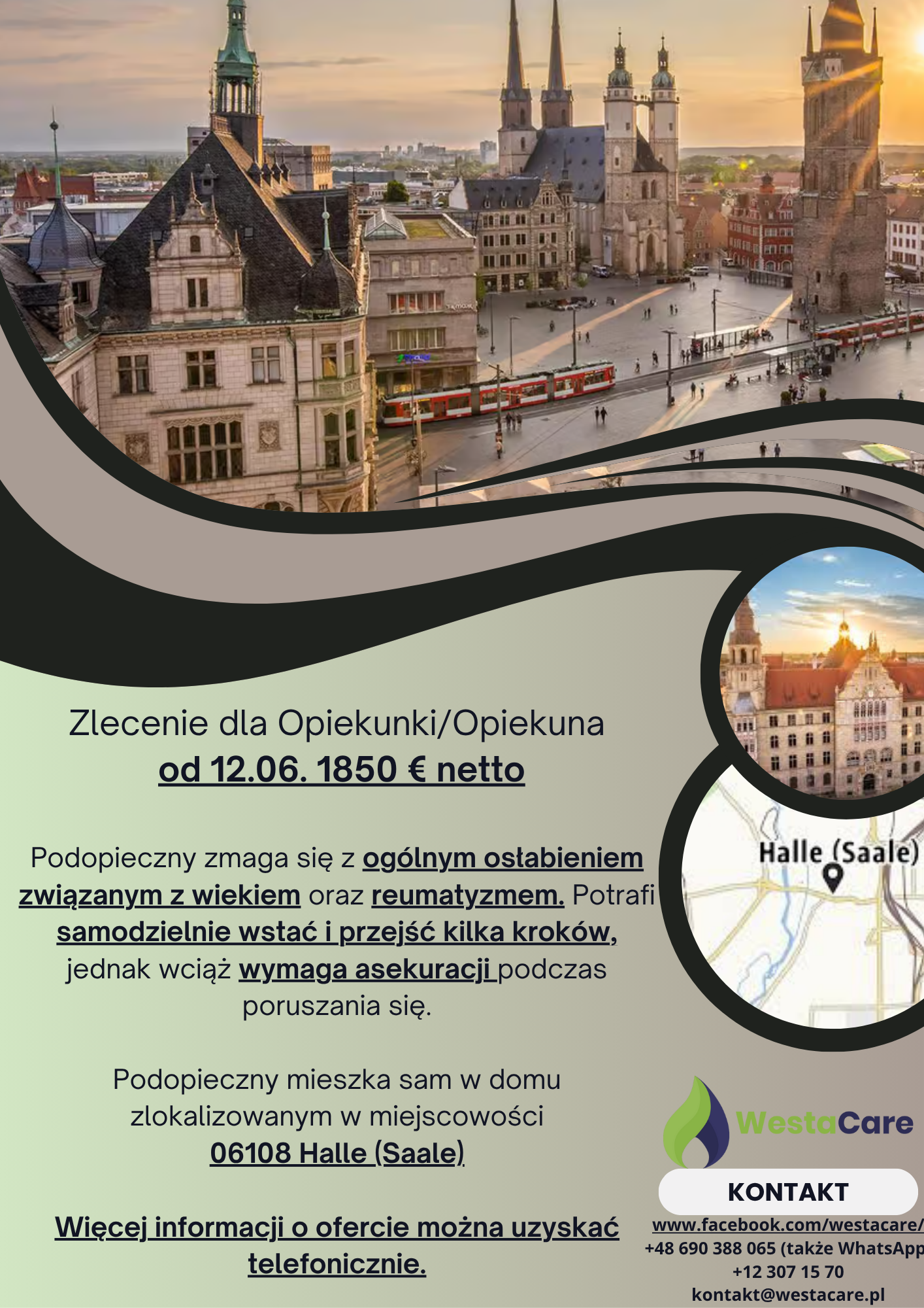 Zlecenie dla Opiekunki/Opiekuna od 12.06. 1850 € netto