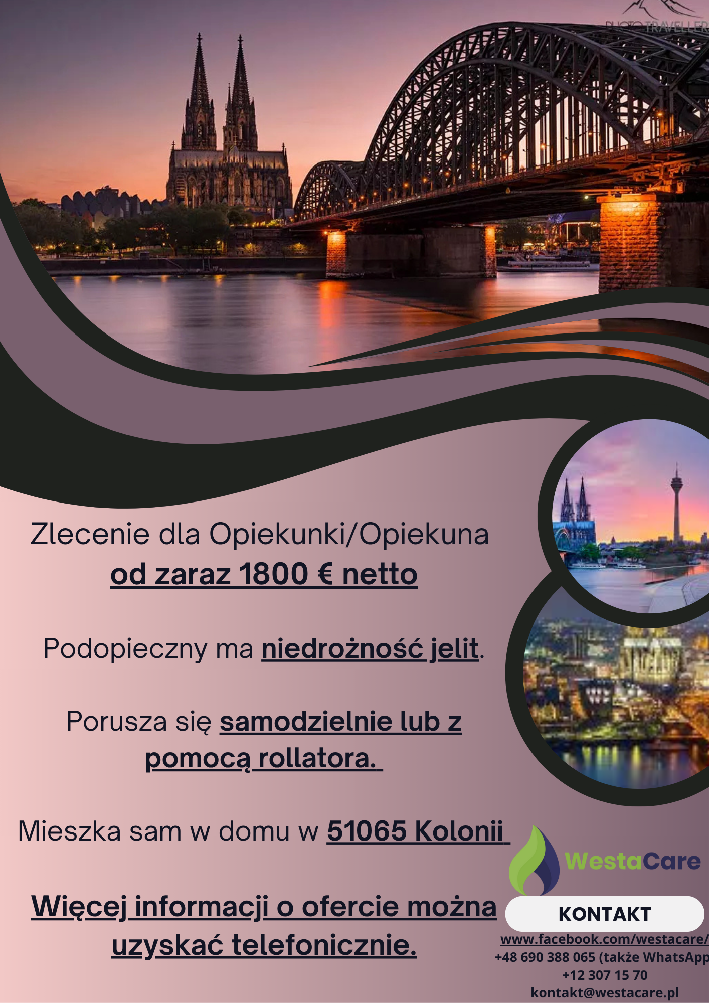 Zlecenie dla Opiekunki/Opiekuna od zaraz 1800 € netto