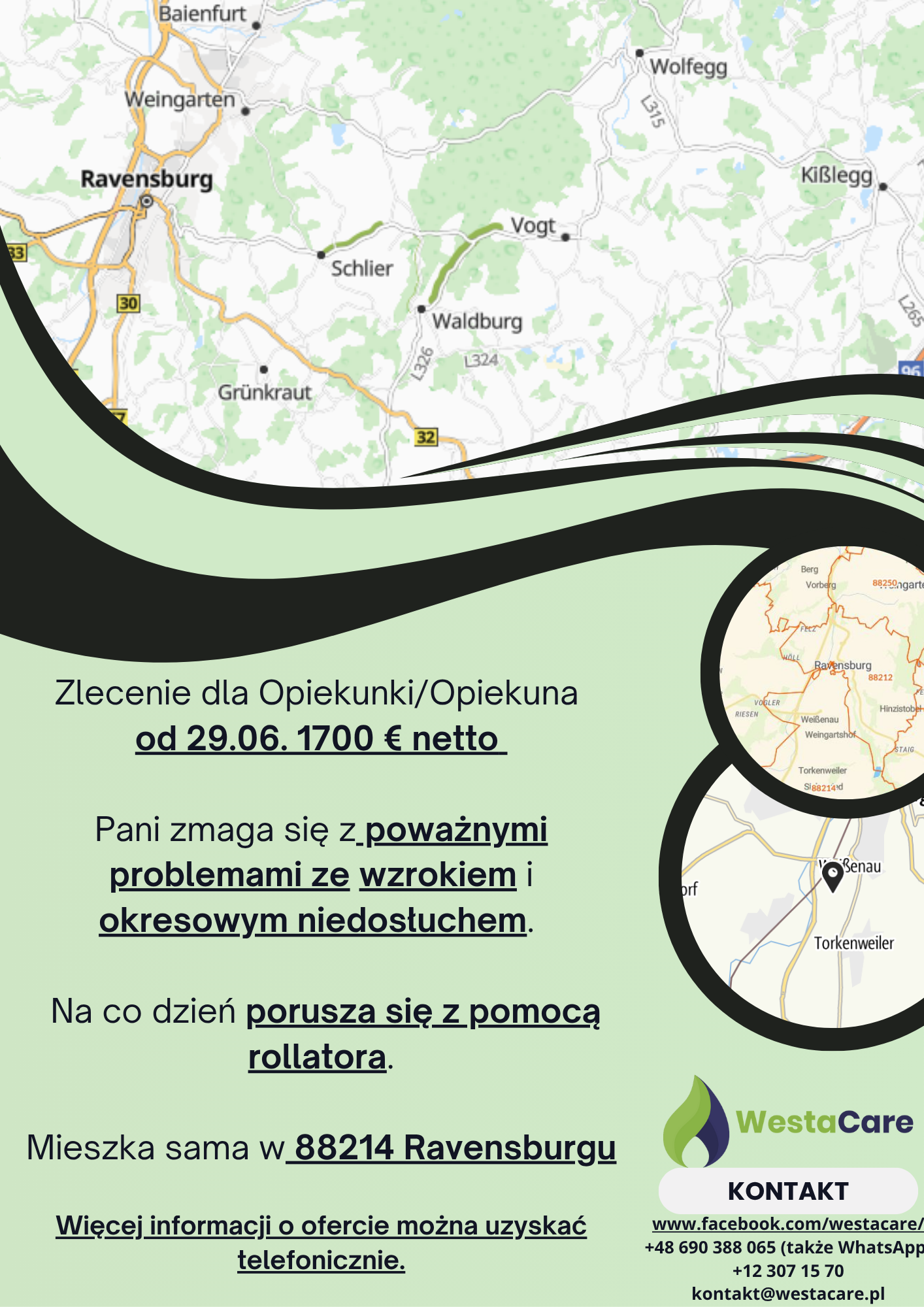 Zlecenie dla Opiekunki/Opiekuna od 29.06. 1700 € netto