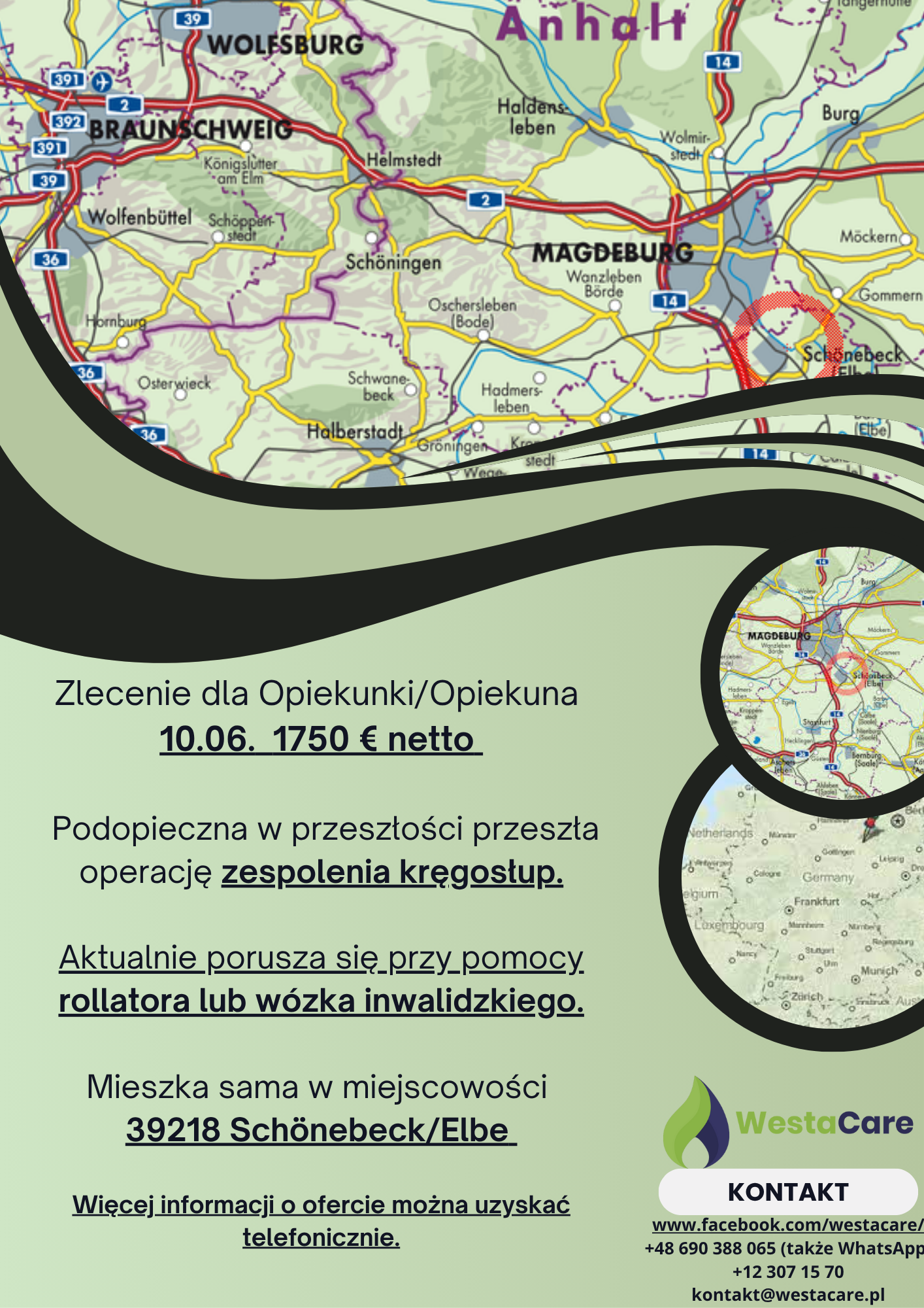 Zlecenie dla Opiekunki/Opiekuna od 10.06. 1750 € netto