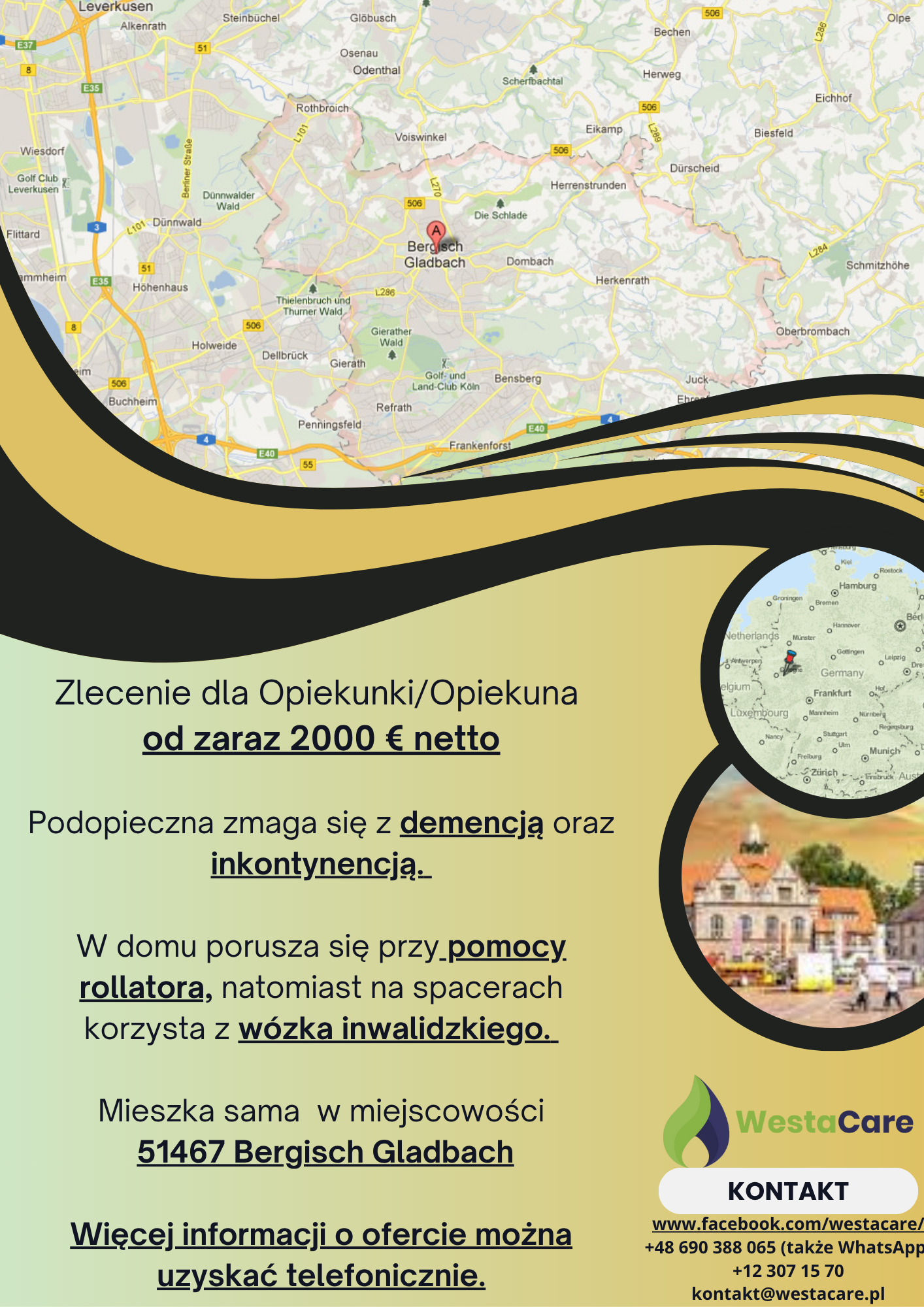 Zlecenie dla Opiekunki/Opiekuna od zaraz 2000 € netto