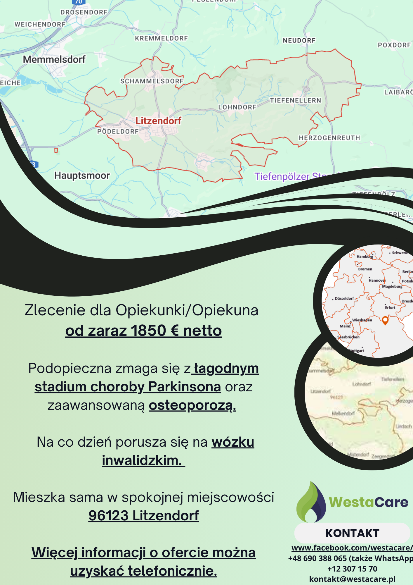 Zlecenie dla Opiekunki/Opiekuna od zaraz 1850 € netto