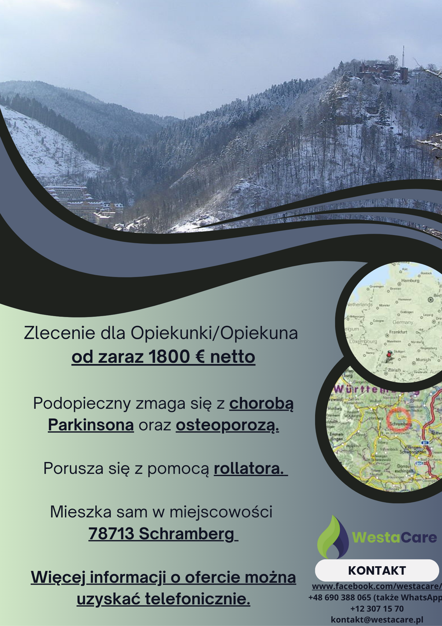 Zlecenie dla Opiekunki/Opiekuna od zaraz 1800 € netto