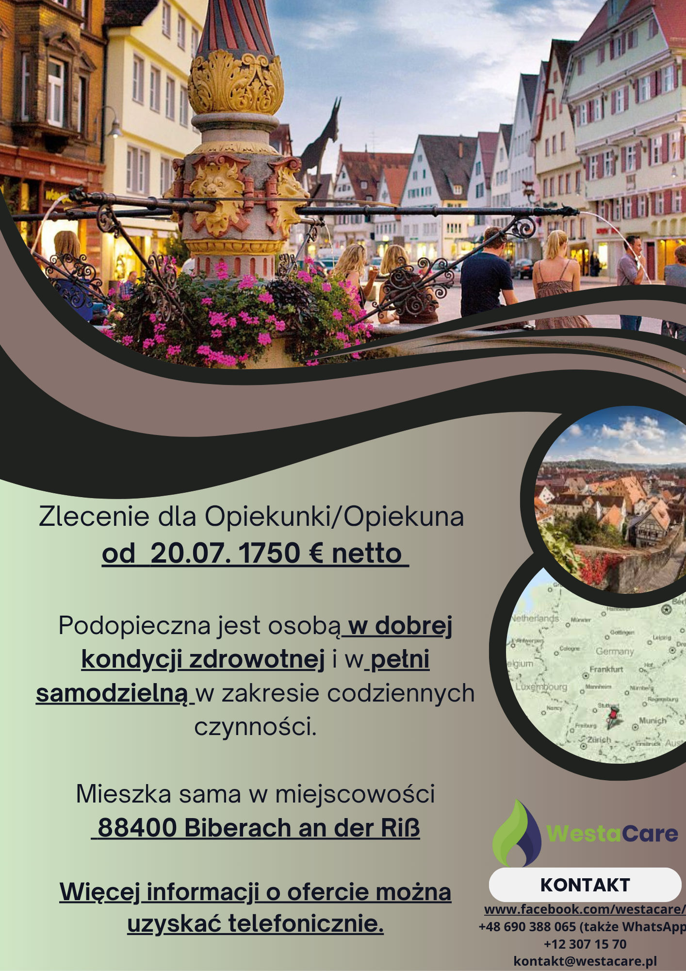 Zlecenie dla Opiekunki/Opiekuna od 20.07. 1750 € netto