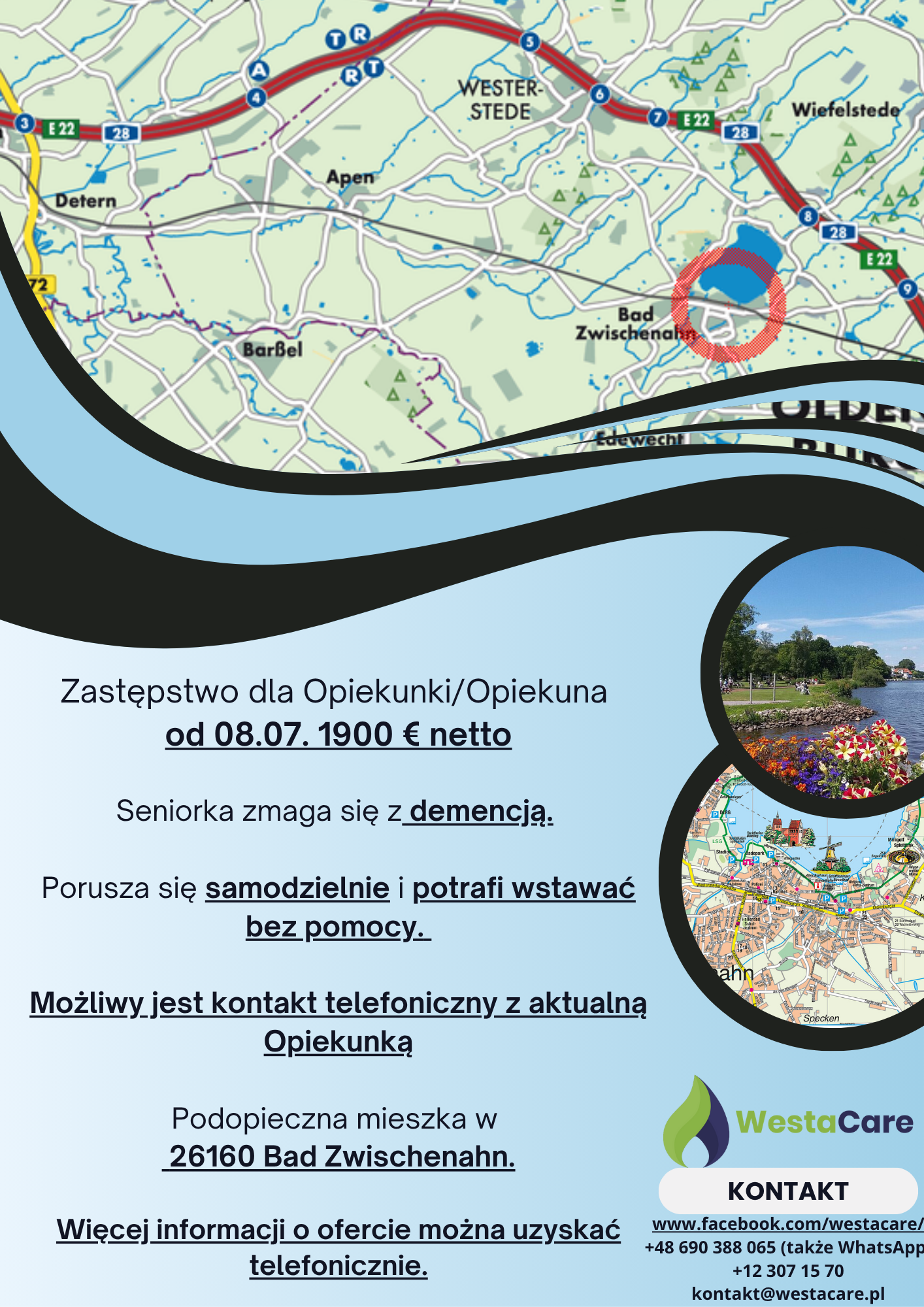 Zastępstwo dla Opiekunki/Opiekuna od 08.07. 1900 € netto