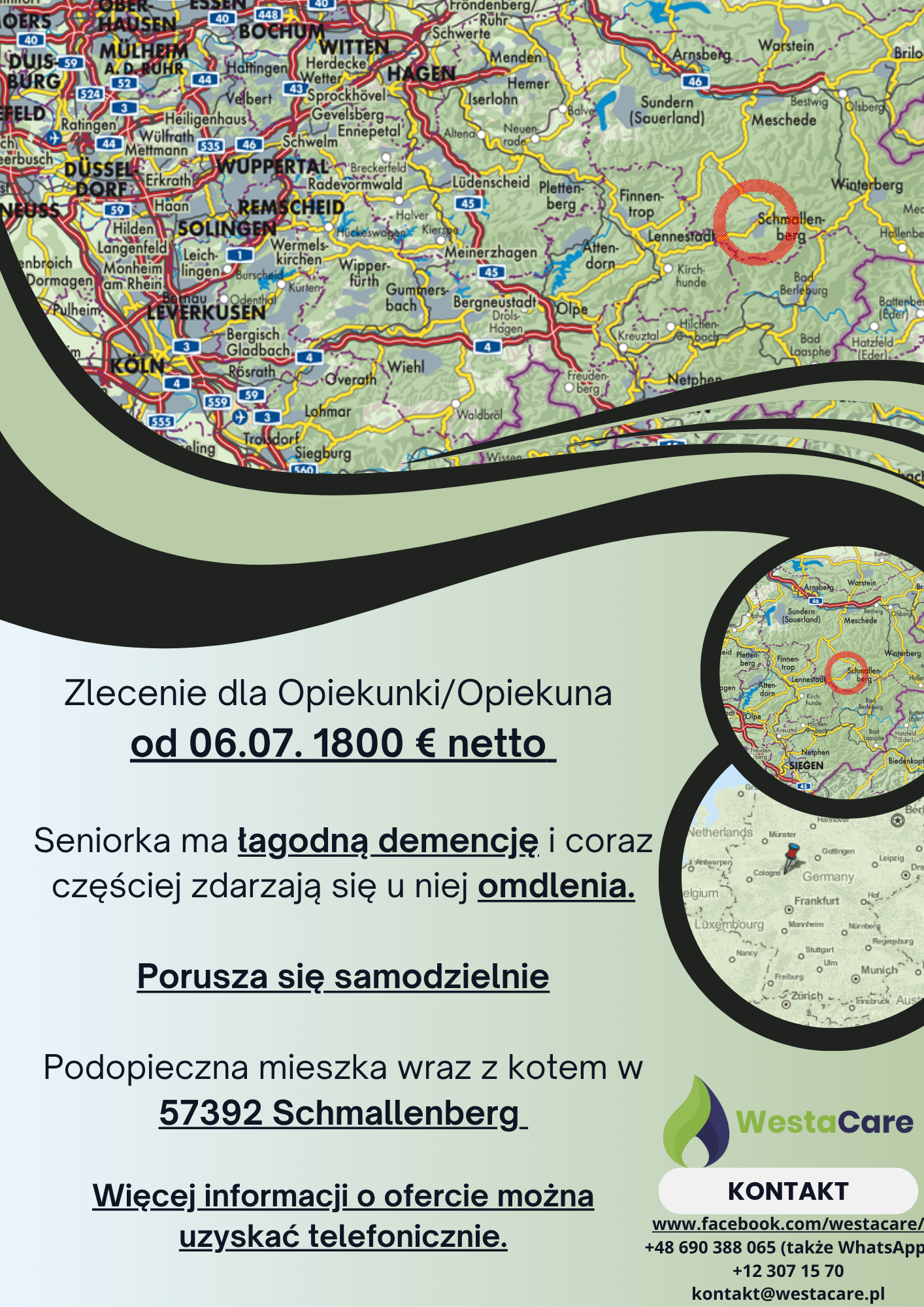 Zlecenie dla Opiekunki/Opiekuna od 06.07. 1800 € netto