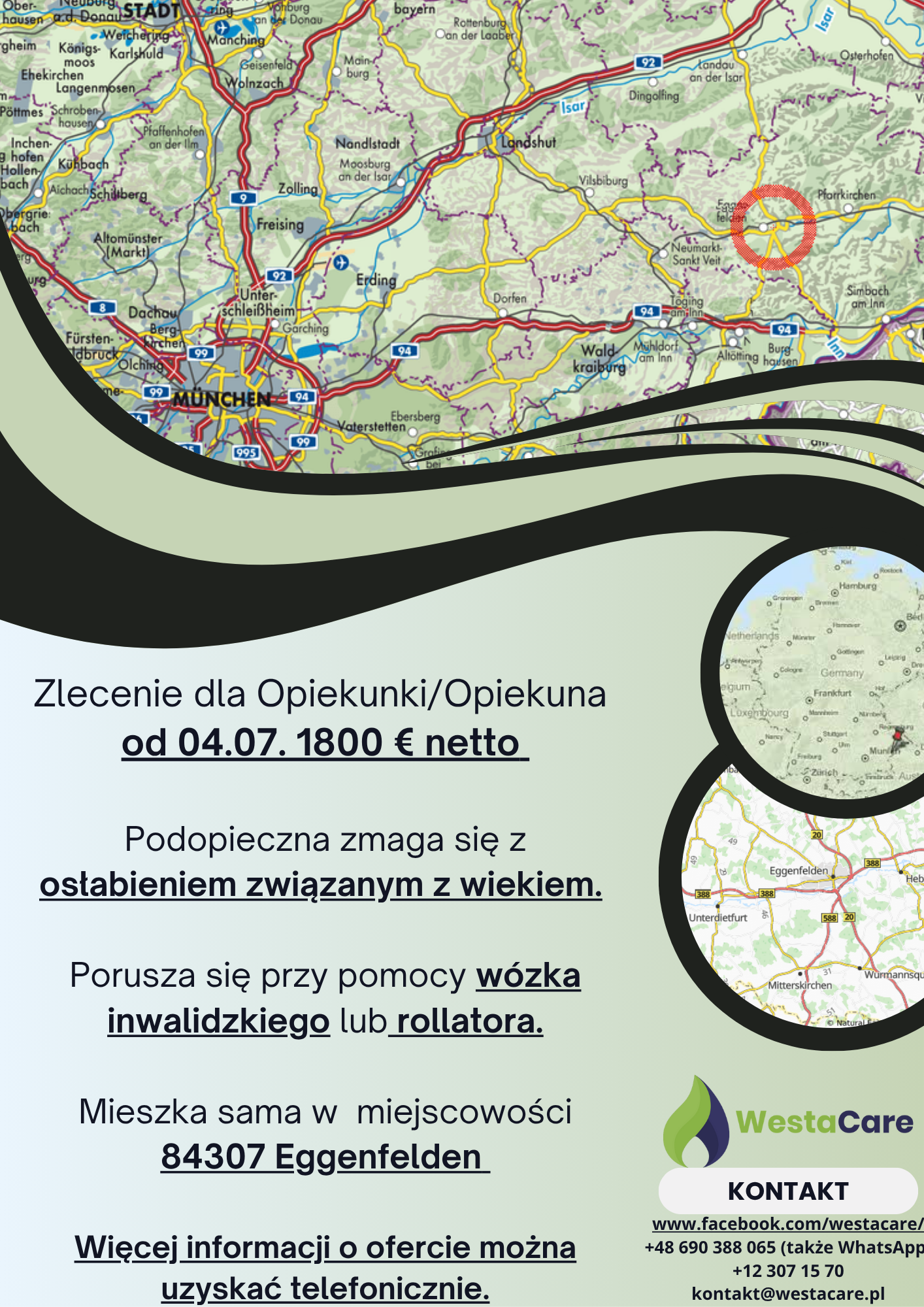 Zlecenie dla Opiekunki/Opiekuna od 04.07. 1800 € netto