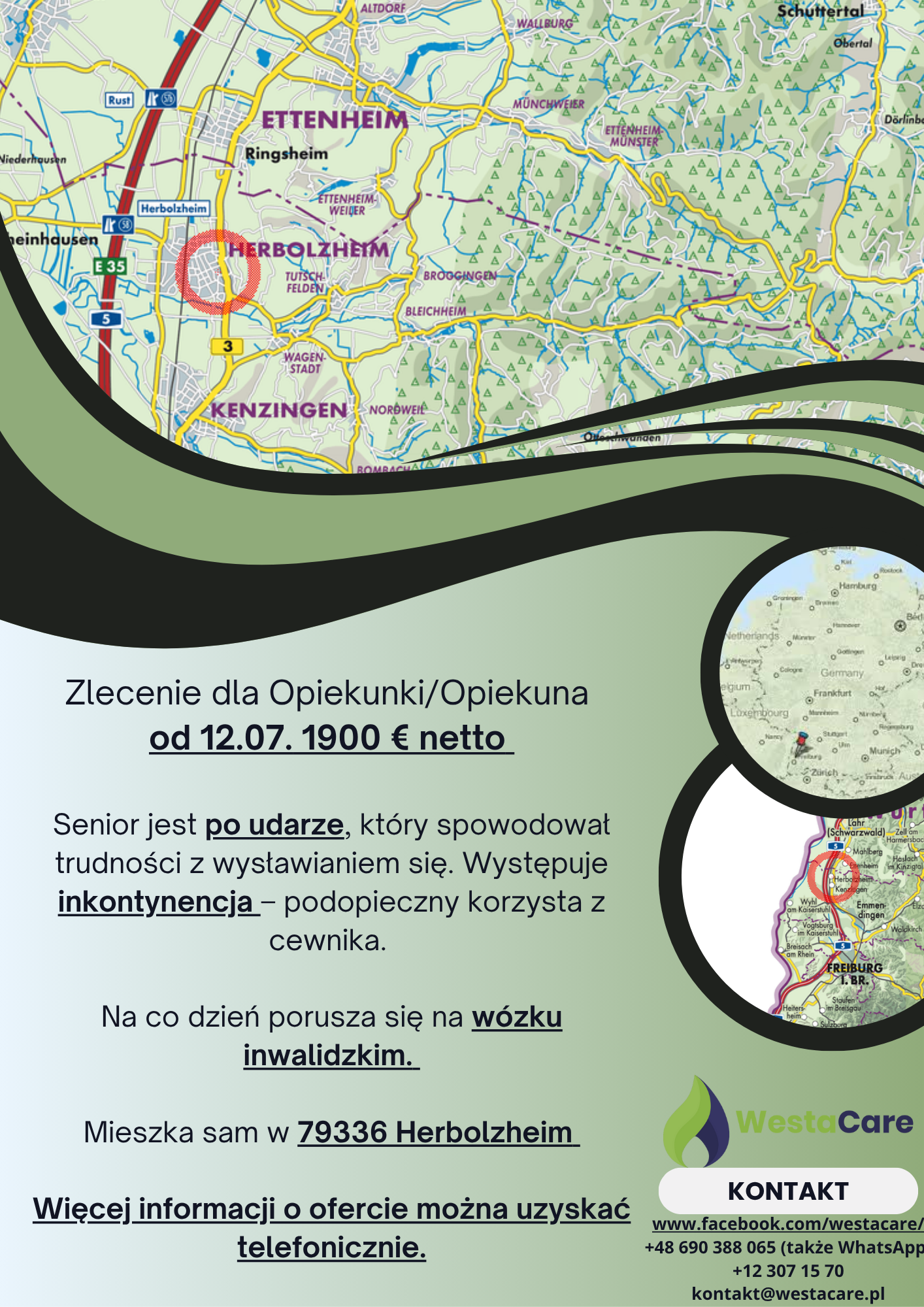 Zlecenie dla Opiekunki/Opiekuna od 12.07. 1900 € netto