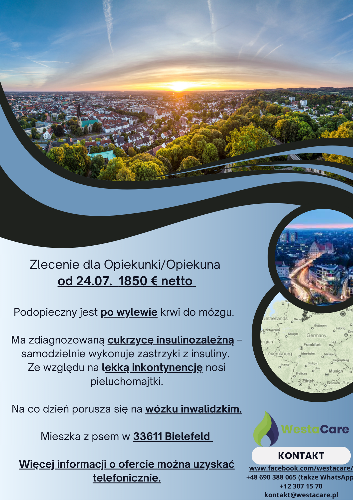 Zlecenie dla Opiekunki/Opiekuna od 24.07. 1850 € netto