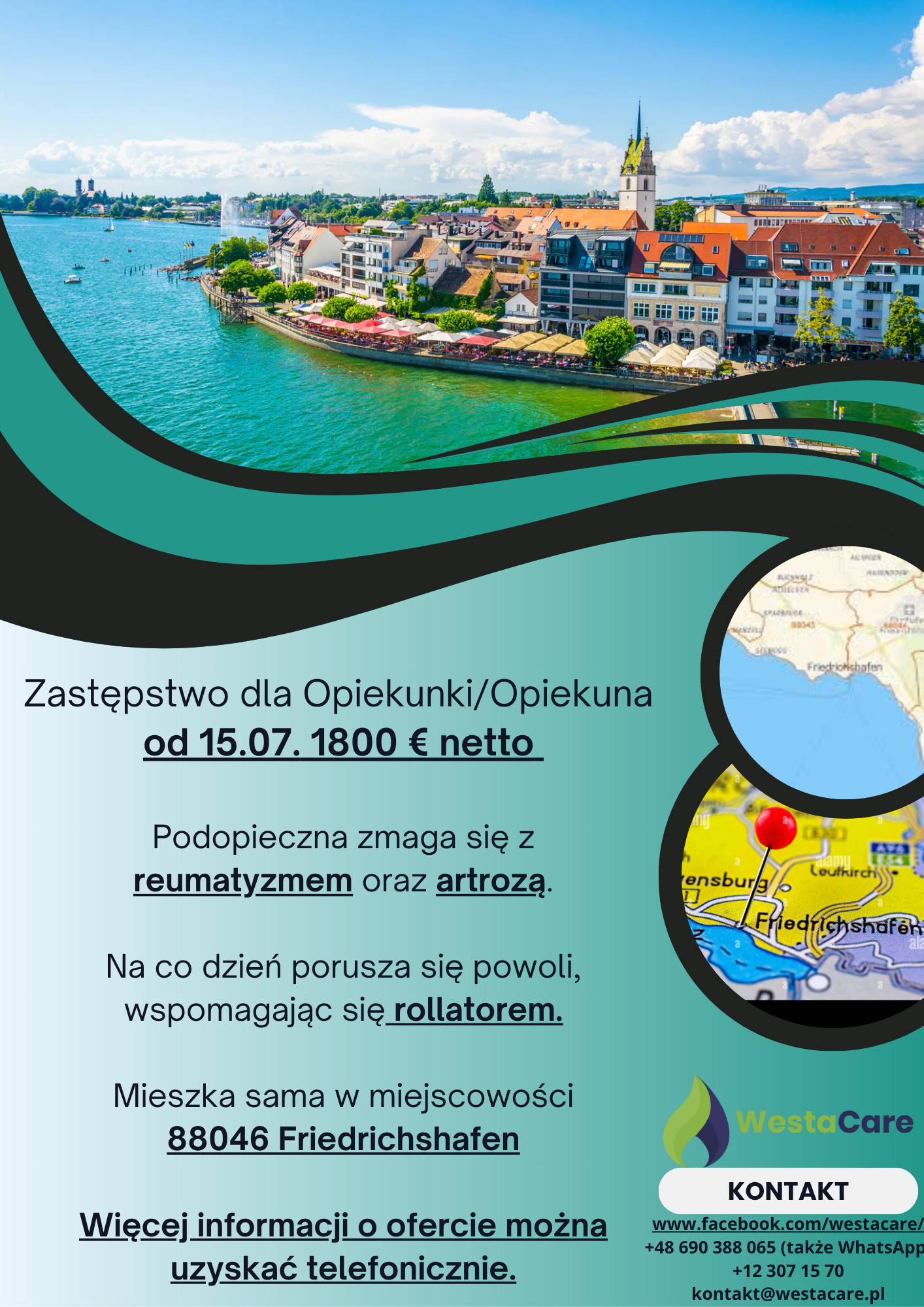 Zastępstwo dla Opiekunki/Opiekuna od 15.07. 1800 € netto