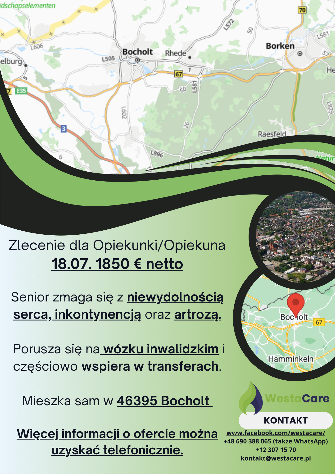 Zlecenie dla Opiekunki/Opiekuna od 18.07. 1850 € netto