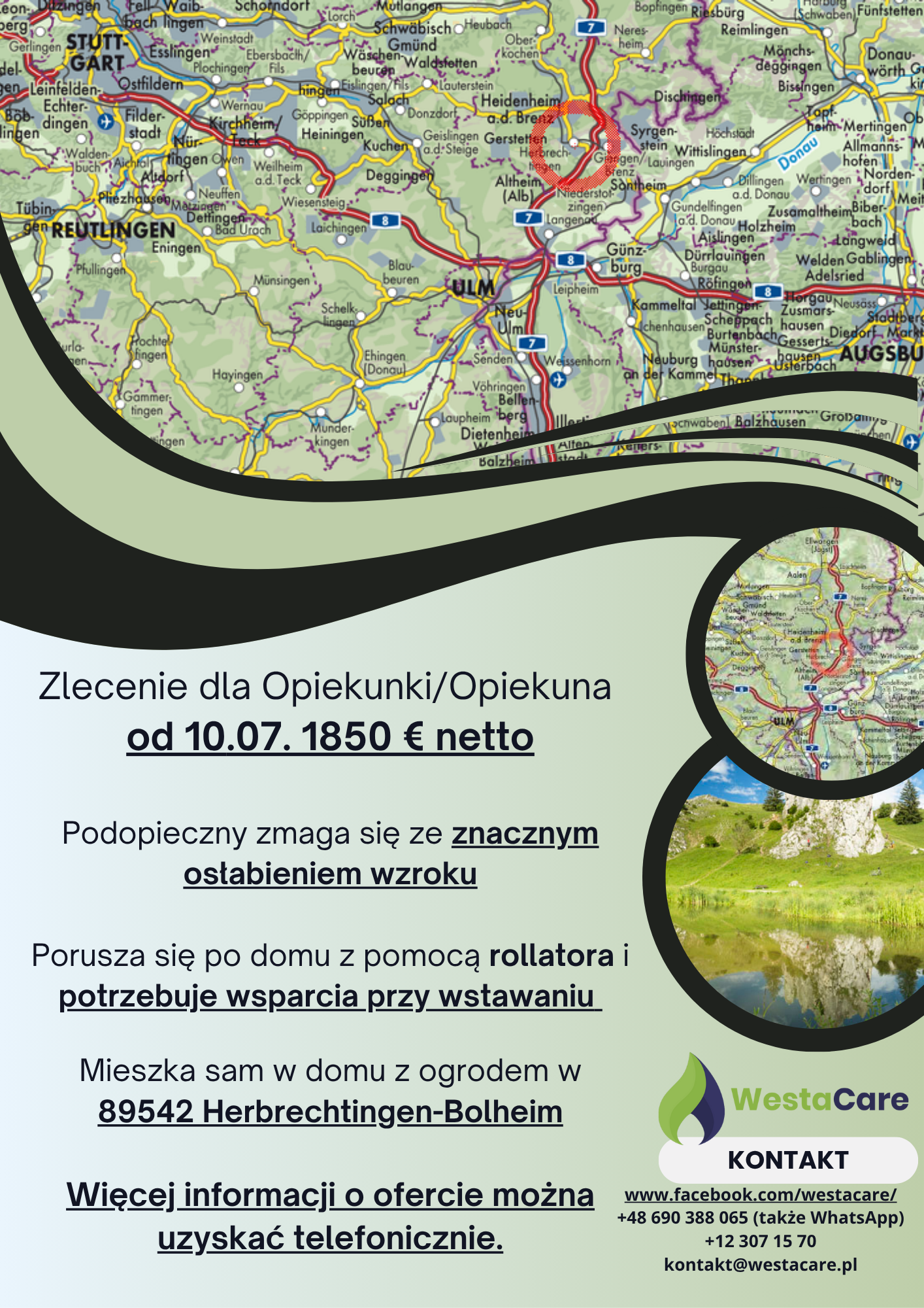 Zlecenie dla Opiekunki/Opiekuna od 10.07. 1850 € netto