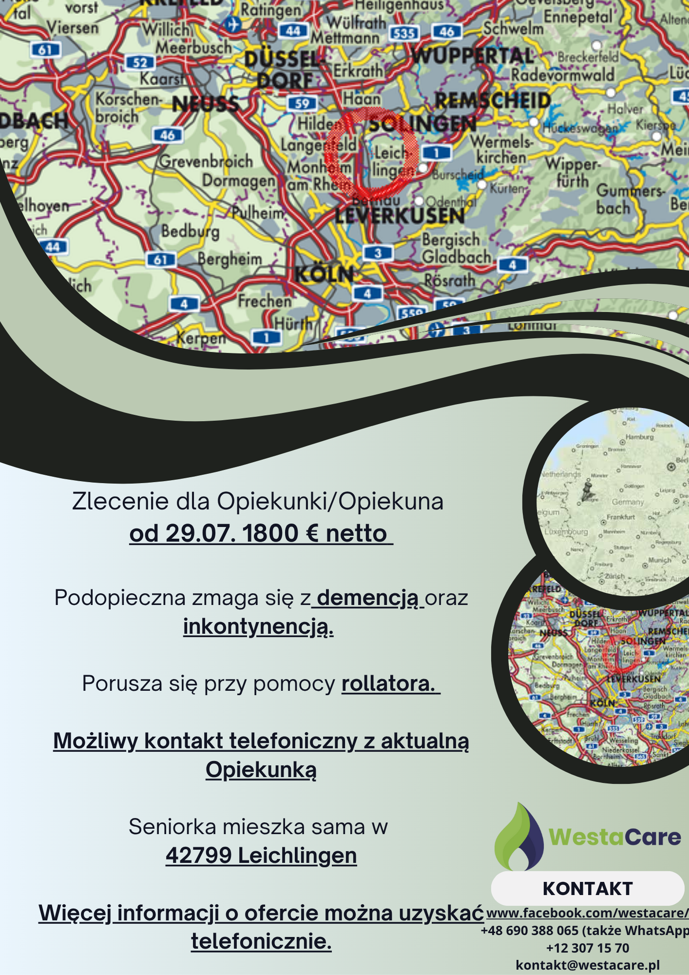Zlecenie dla Opiekunki/Opiekuna od 29.07. 1800 € netto