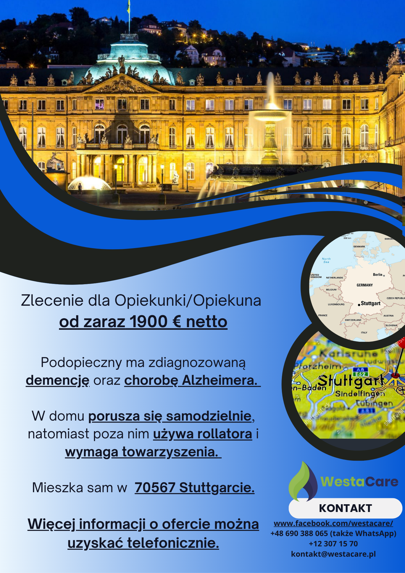 Zlecenie dla Opiekunki/Opiekuna od zaraz 1900 € netto