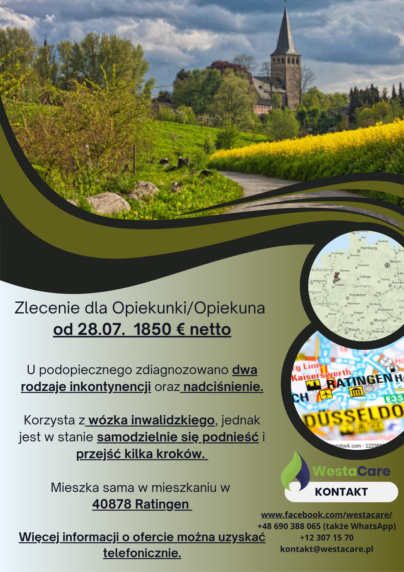 Zlecenie dla Opiekunki/Opiekuna od 28.07. 1850 € netto