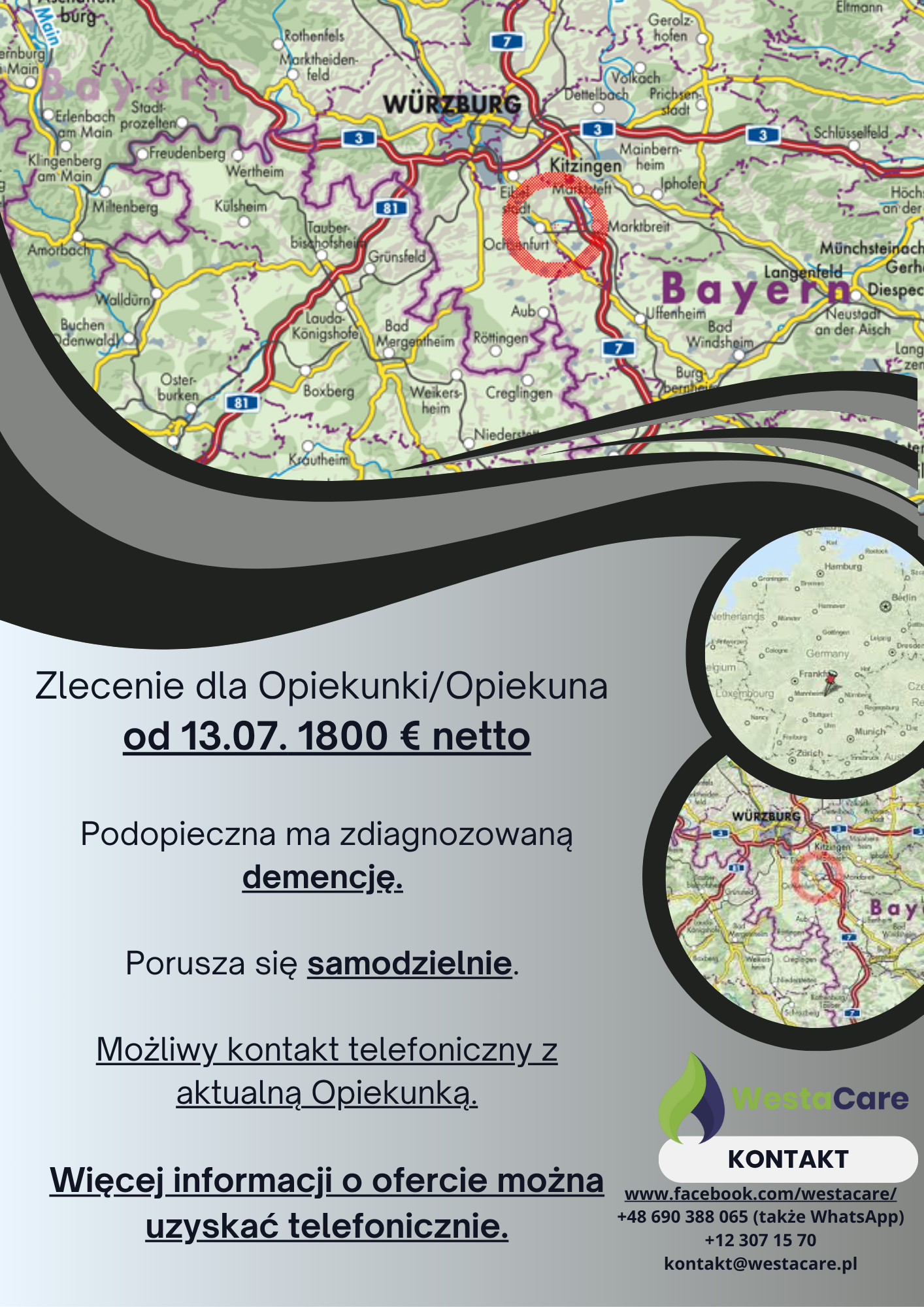 Zlecenie dla Opiekunki/Opiekuna od 13.07. 1800 € netto