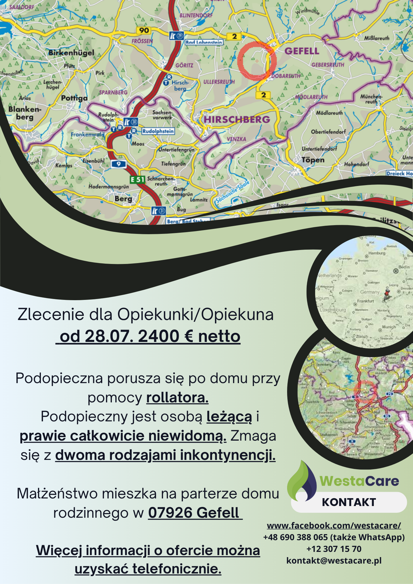 Zlecenie dla Opiekunki/Opiekuna od 28.07. 2400 € netto