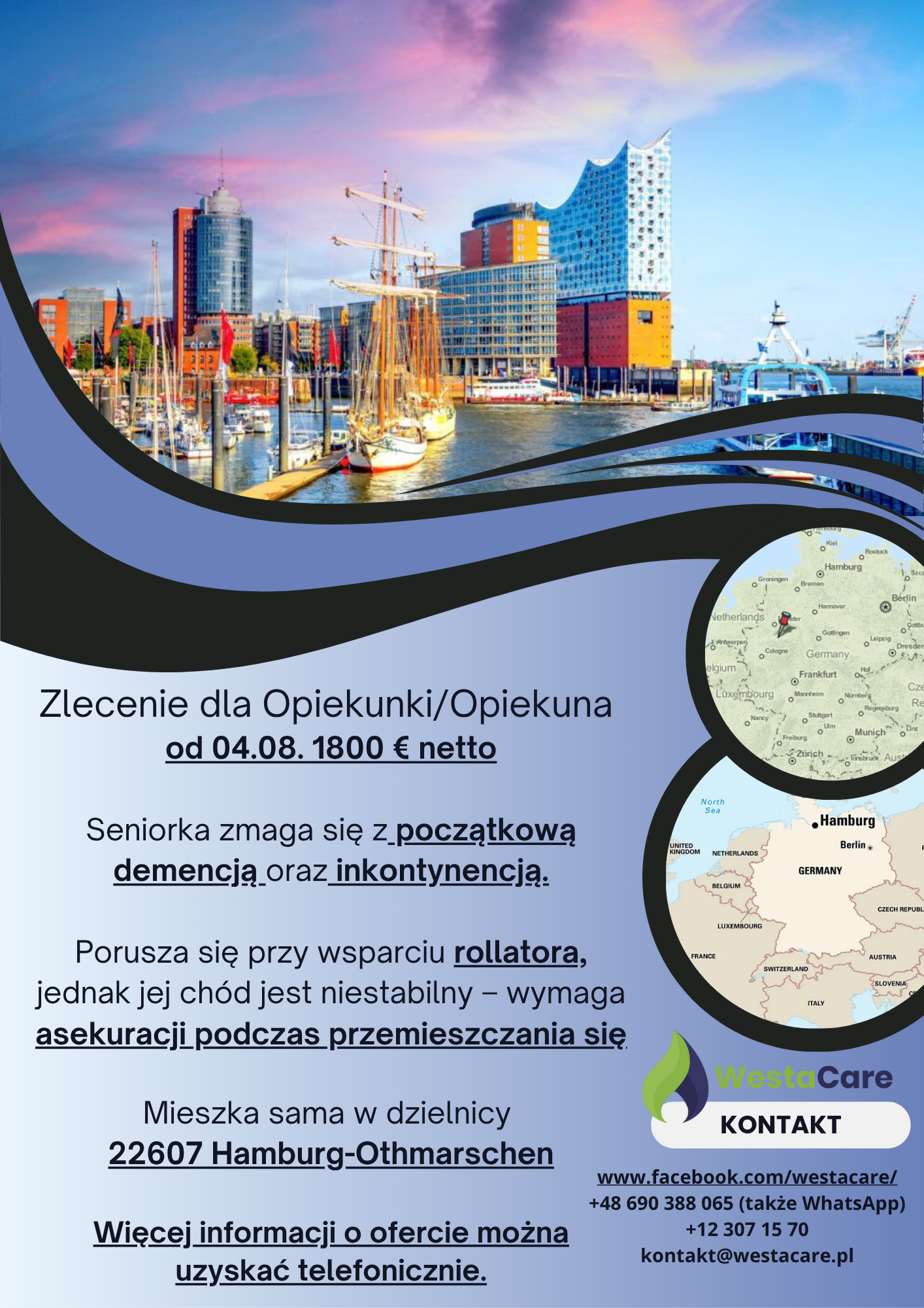 Zlecenie dla Opiekunki/Opiekuna od 04.08. 1800 € netto