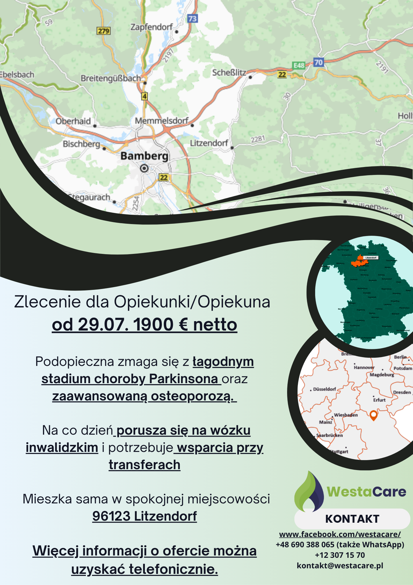 Zlecenie dla Opiekunki/Opiekuna od 29.07. 1900 € netto