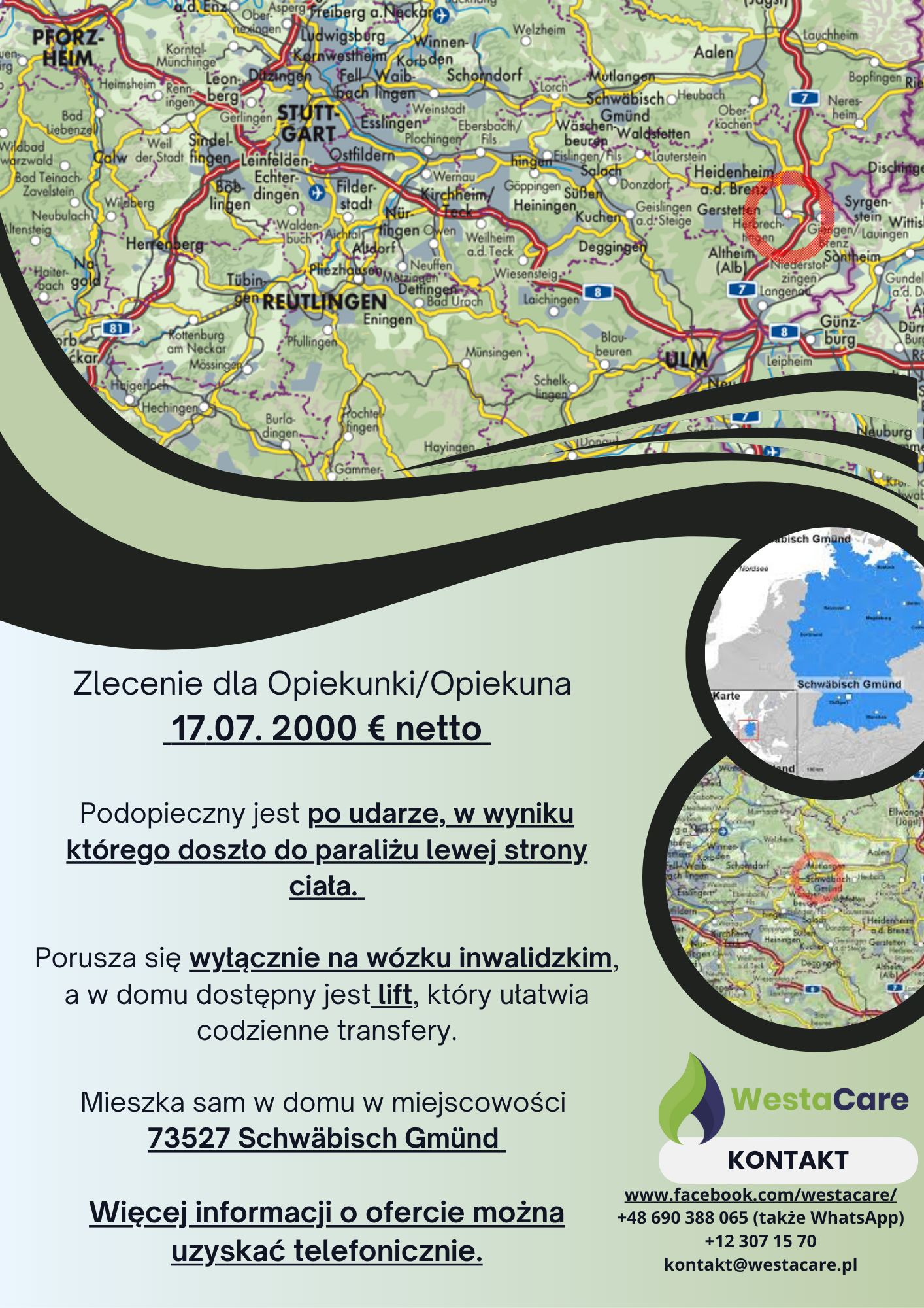 Zlecenie dla Opiekunki/Opiekuna od 17.07. 2000 € netto