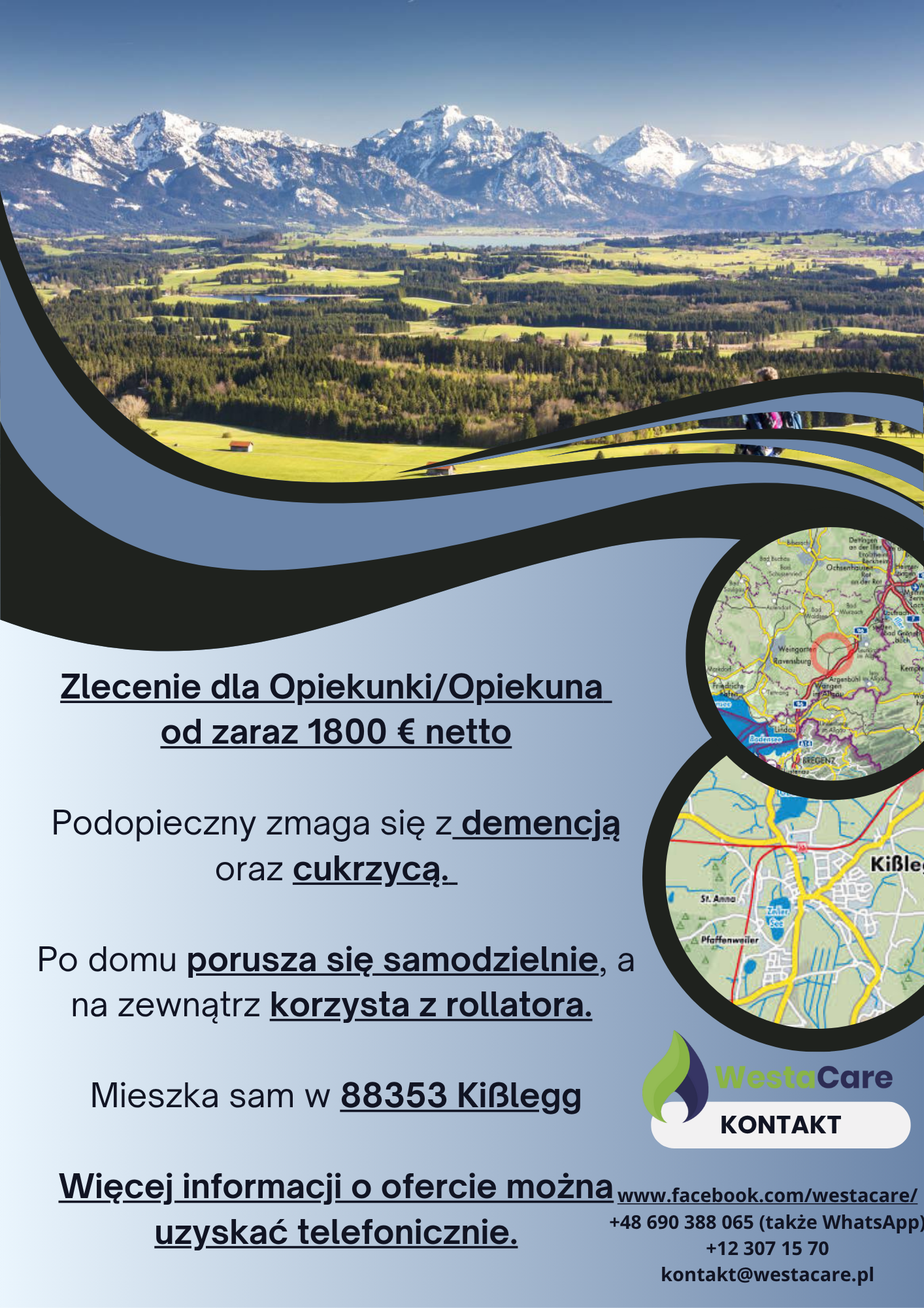 Zlecenie dla Opiekunki/Opiekuna od zaraz 1800 € netto