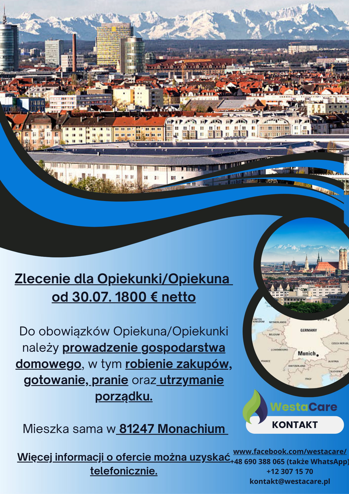 Zlecenie dla Opiekunki/Opiekuna od 30.07. 1800 € netto