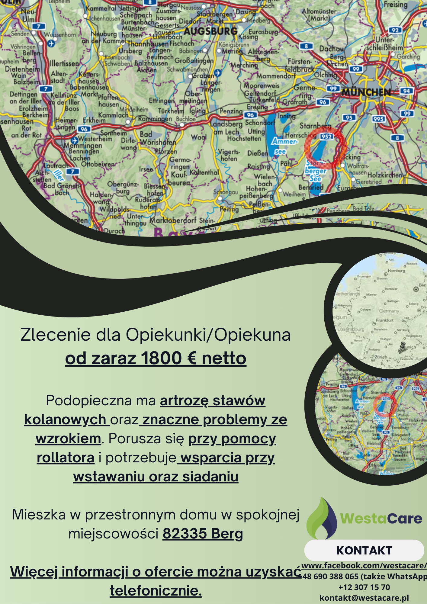 Zlecenie dla Opiekunki/Opiekuna od zaraz 1800 € netto