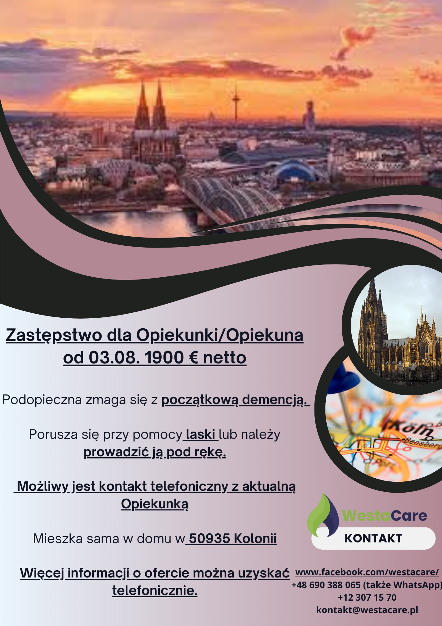 Zastępstwo dla Opiekunki/Opiekuna od 03.08. 1900 € netto
