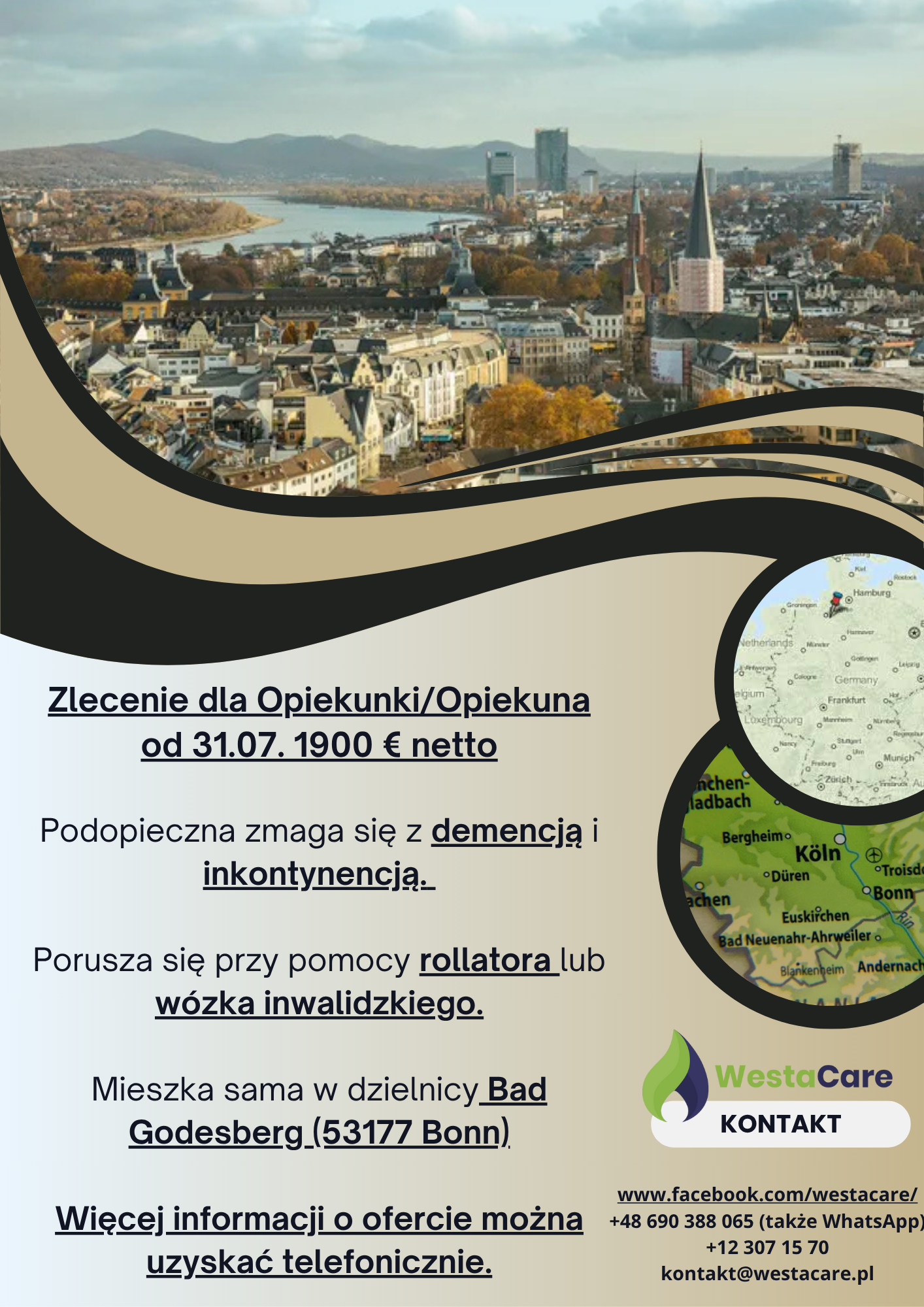 Zlecenie dla Opiekunki/Opiekuna od 31.07. 1900 € netto