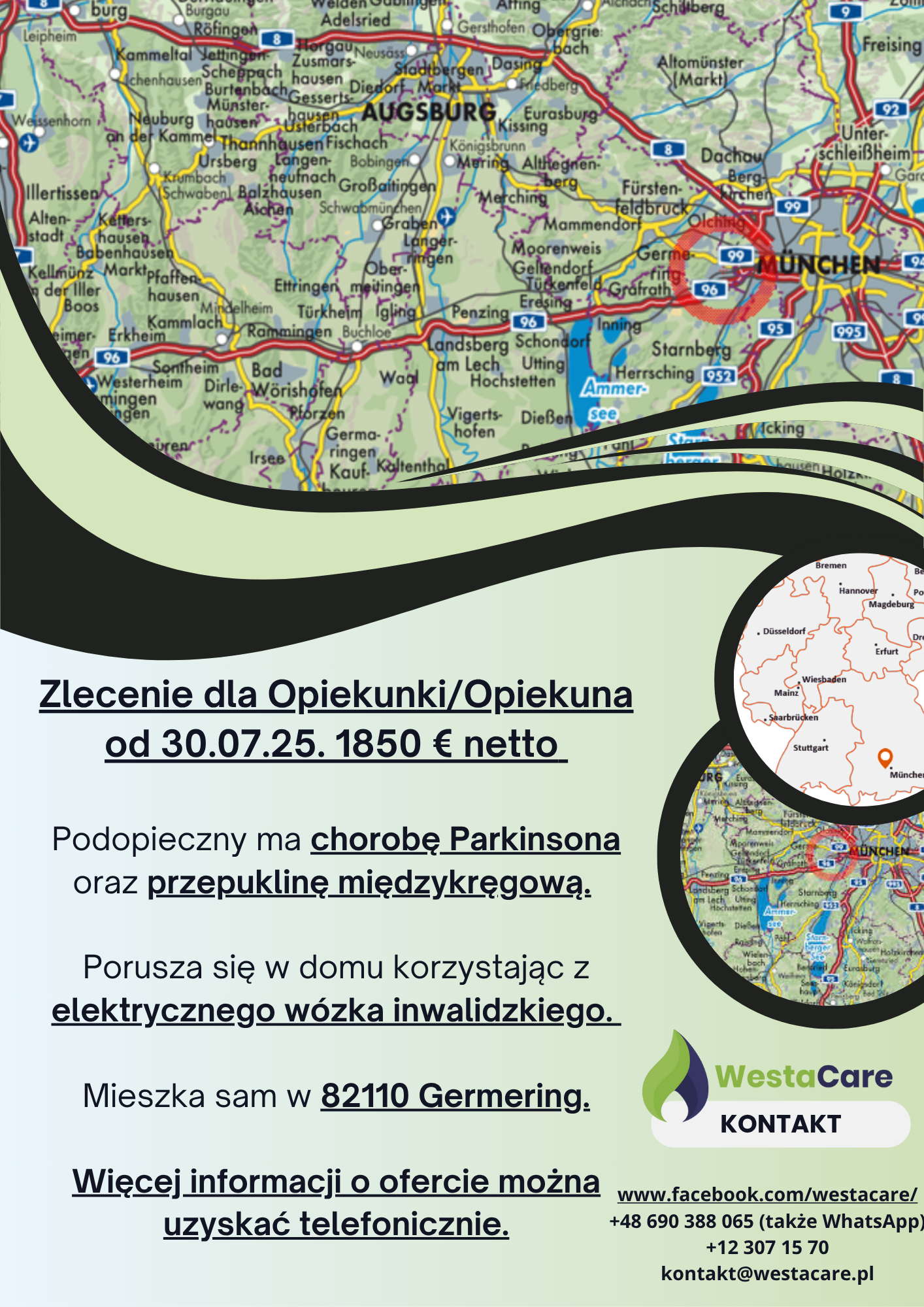Zlecenie dla Opiekunki/Opiekuna od 30.07.25. 1850 € netto