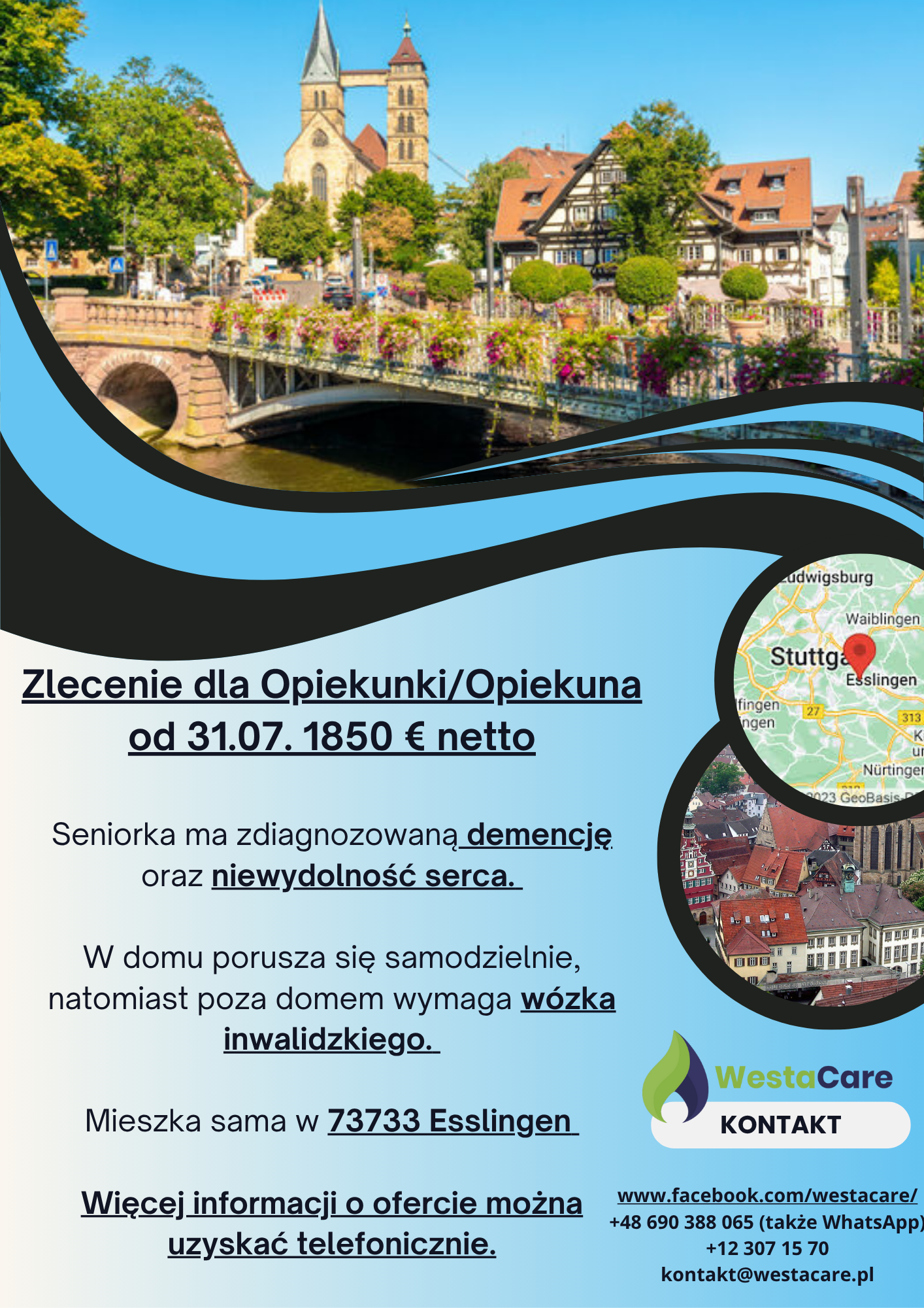 Zlecenie dla Opiekunki/Opiekuna od 31.07. 1850 € netto