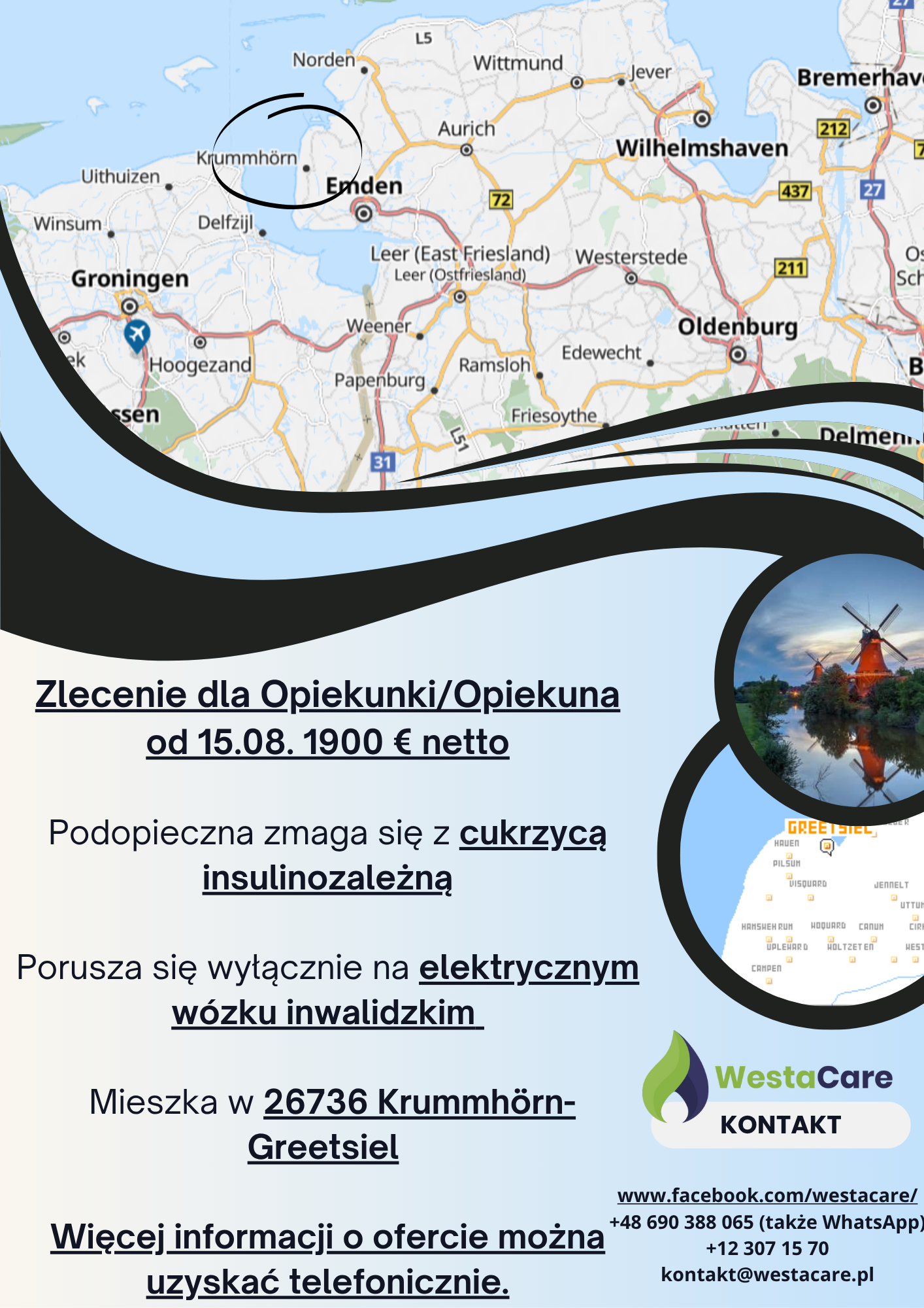 Zlecenie dla Opiekunki/Opiekuna od 15.08. 1900 € netto