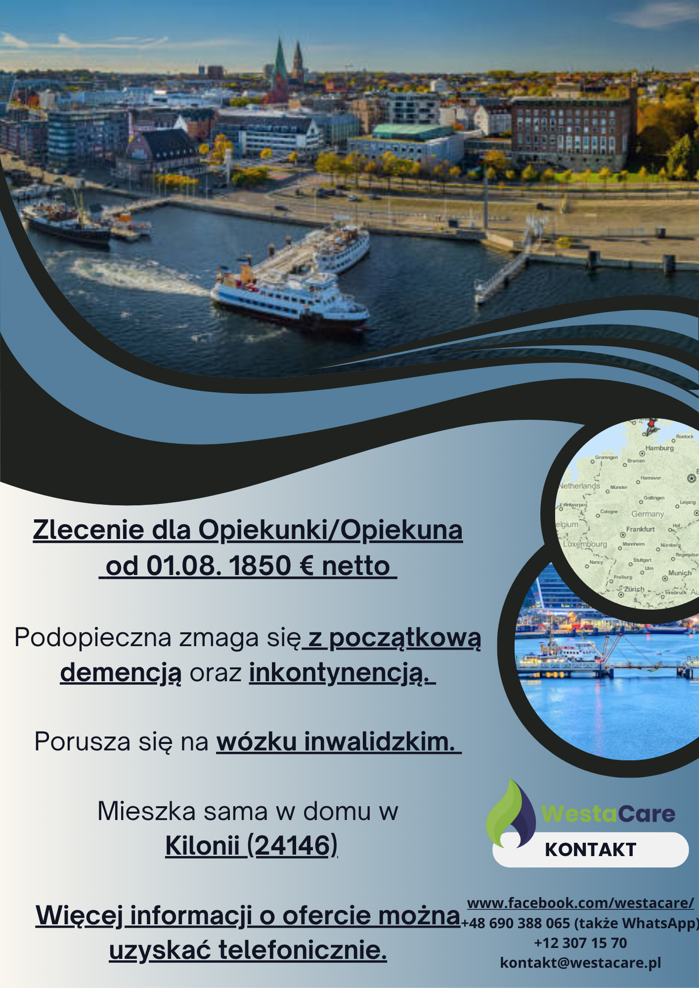 Zlecenie dla Opiekunki/Opiekuna od 01.08. 1850 € netto