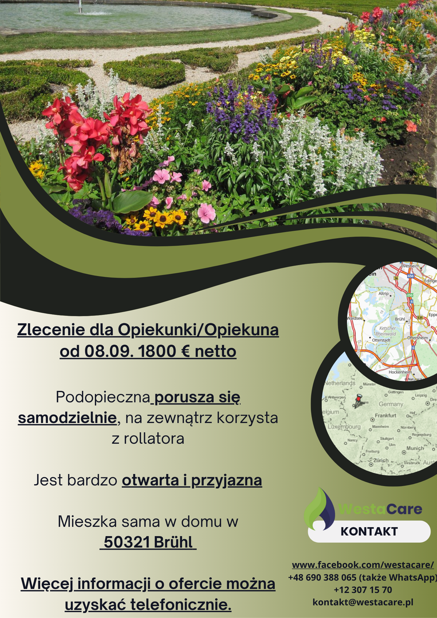 Zlecenie dla Opiekunki/Opiekuna od 08.09. 1800 € netto