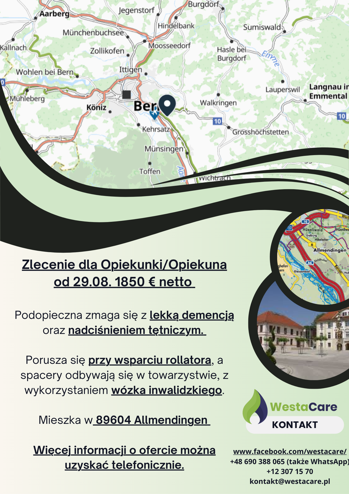 Zlecenie dla Opiekunki/Opiekuna od 29.08. 1850 € netto