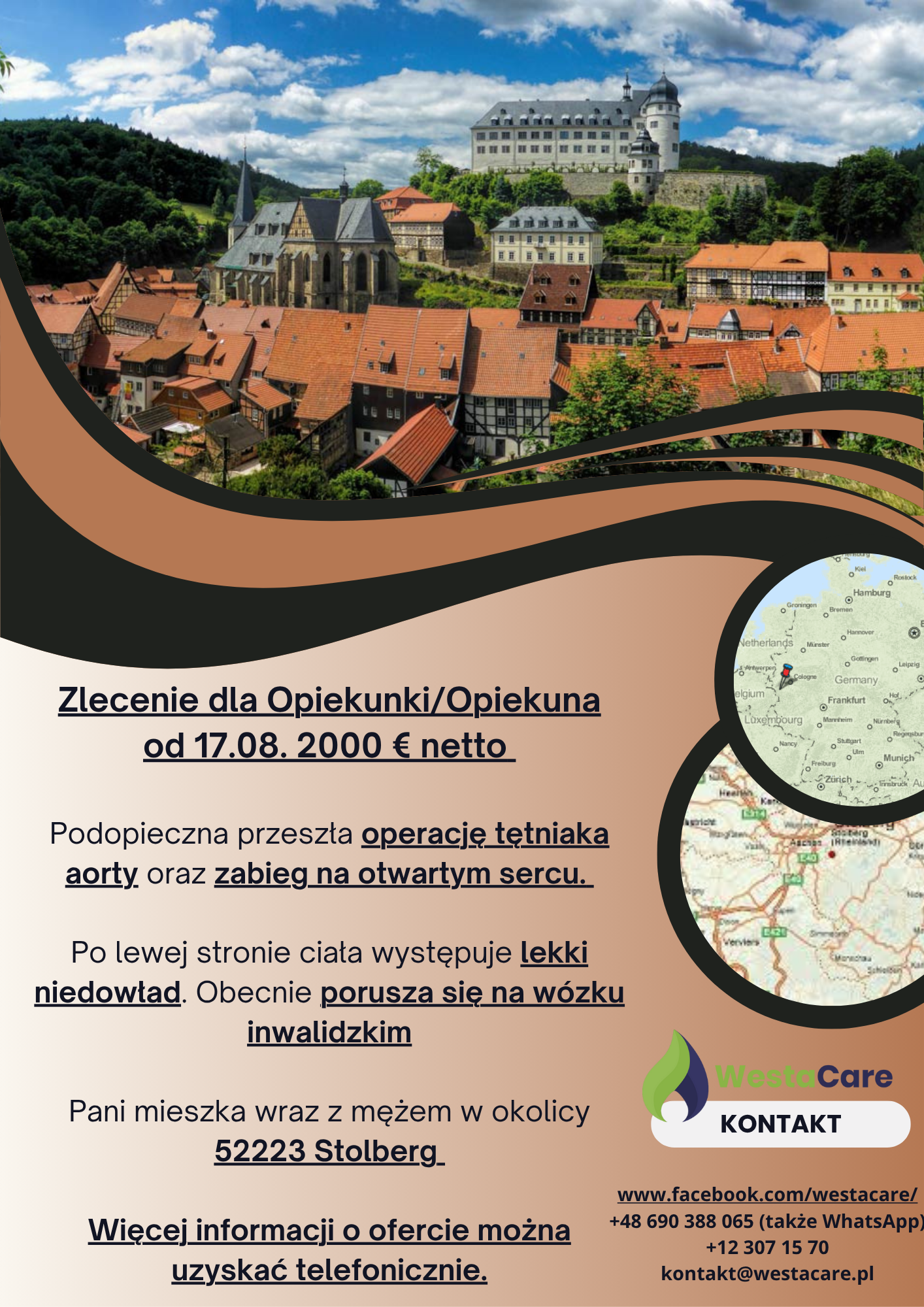 Zlecenie dla Opiekunki/Opiekuna od 17.08. 2000 € netto