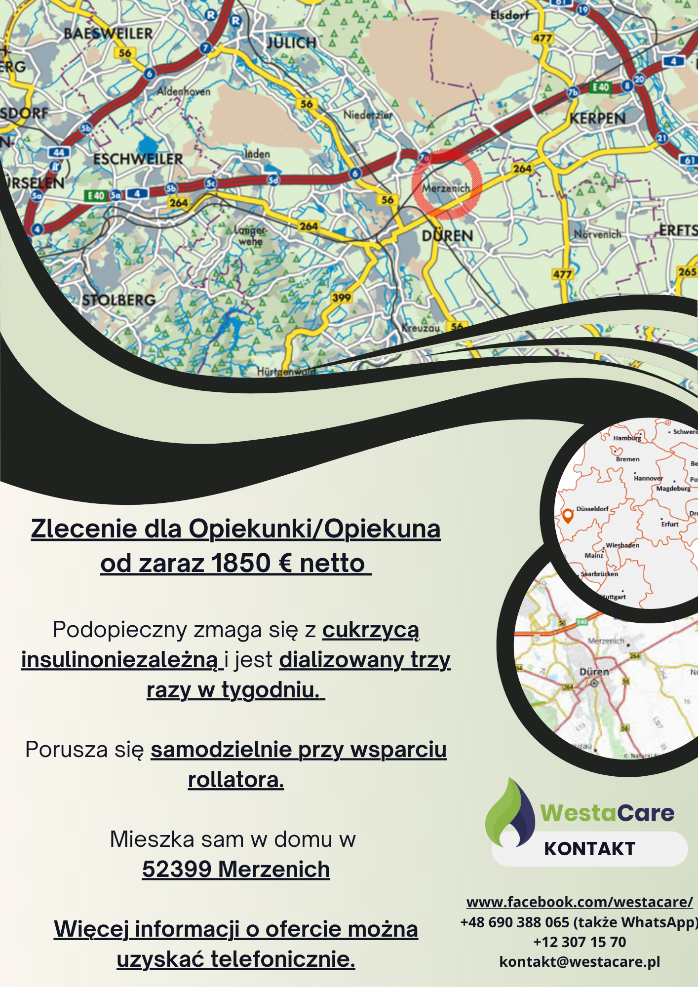 Zlecenie dla Opiekunki/Opiekuna od zaraz 1850 € netto