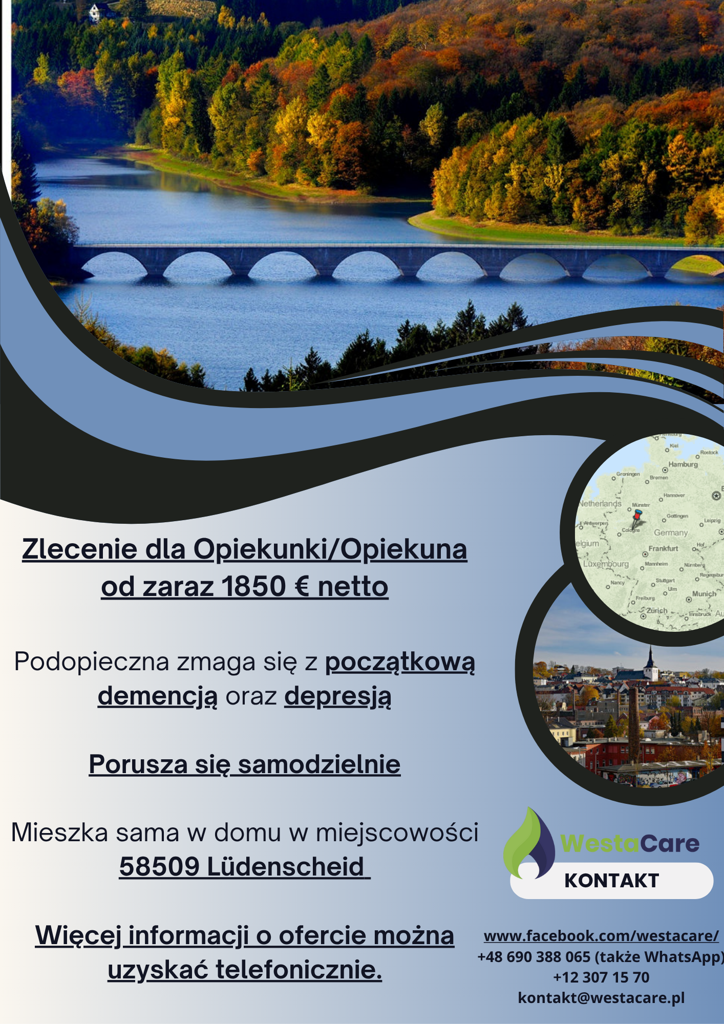 Zlecenie dla Opiekunki/Opiekuna od zaraz 1850 € netto