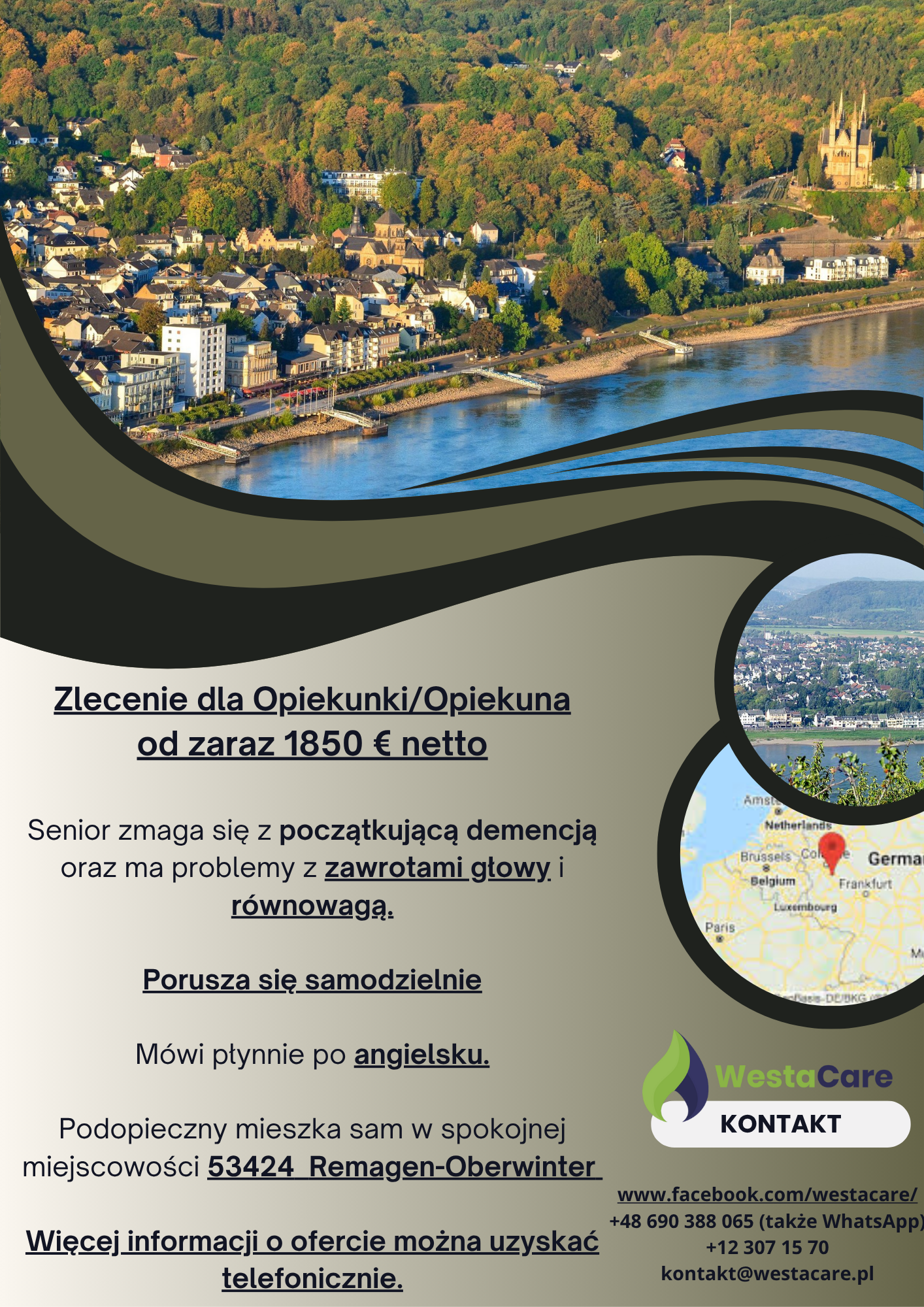 Zlecenie dla Opiekunki/Opiekuna od zaraz 1850 € netto