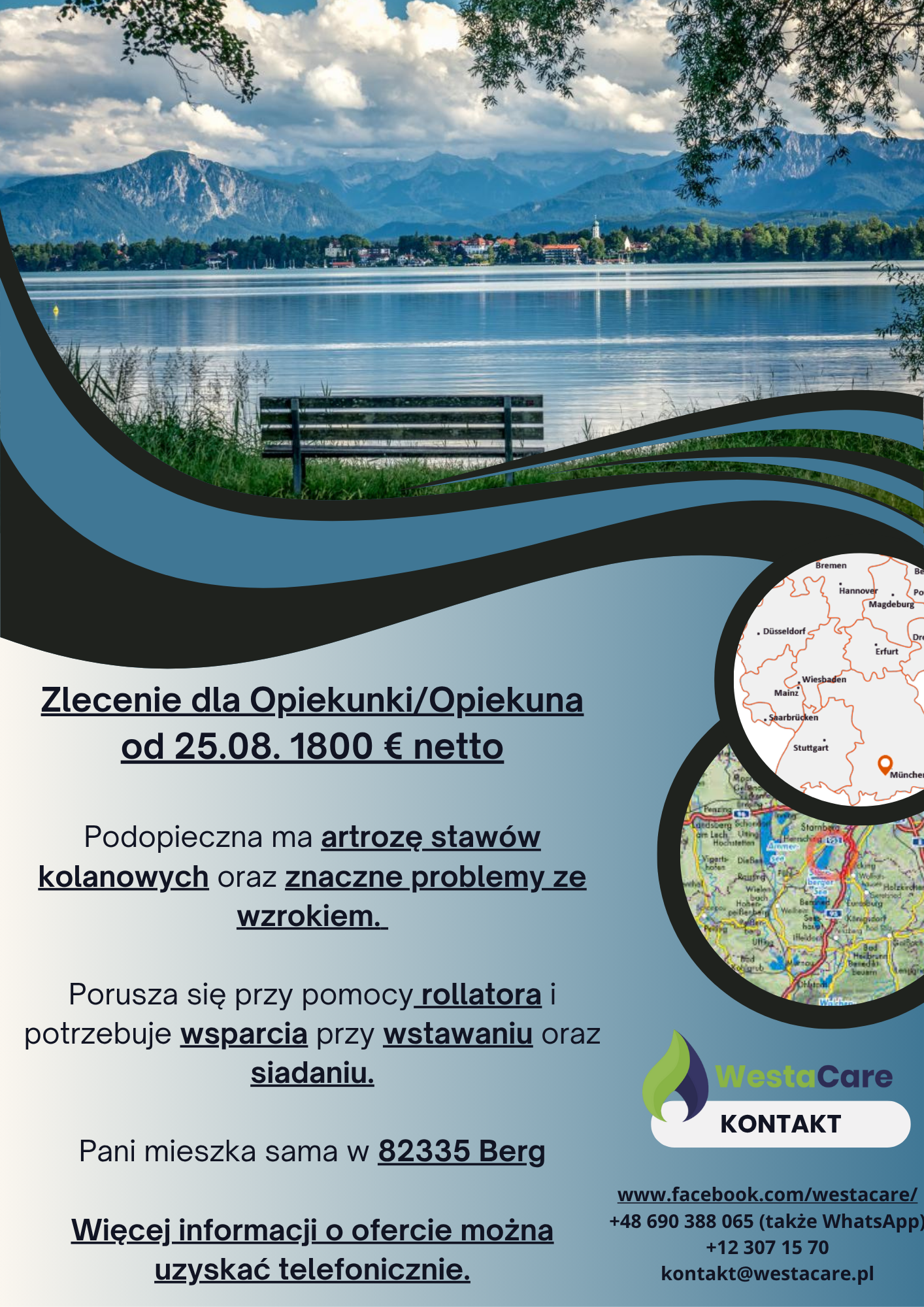 Zlecenie dla Opiekunki/Opiekuna od 25.08. 1800 € netto