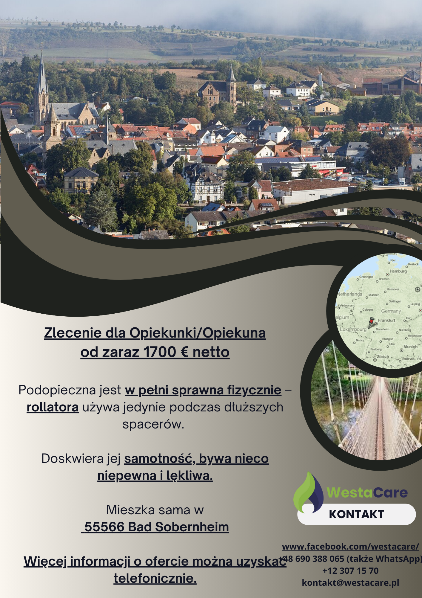 Zlecenie dla Opiekunki/Opiekuna od zaraz 1700 € netto